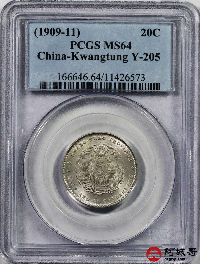 Lot:37 广东宣统一钱四分四厘 曝光 PCGS MS64