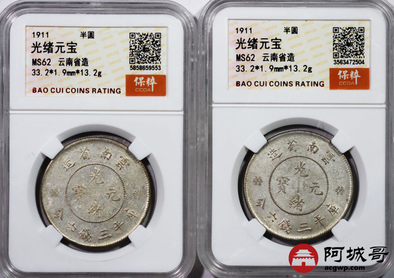 Lot:null 云南新龙半圆 两枚一组 保粹评级 MS62