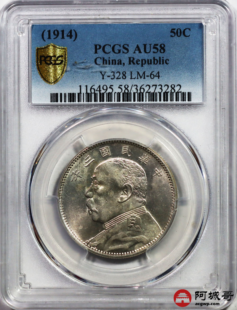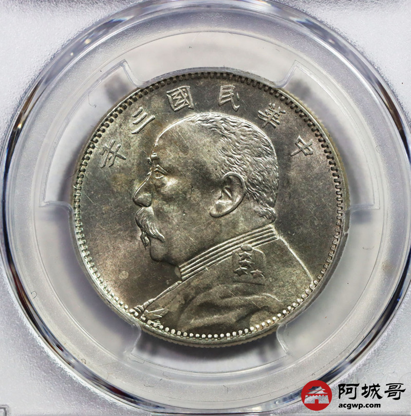 Lot:null 镜面深打转光三年大头 中圆 全深打 PCGS AU58