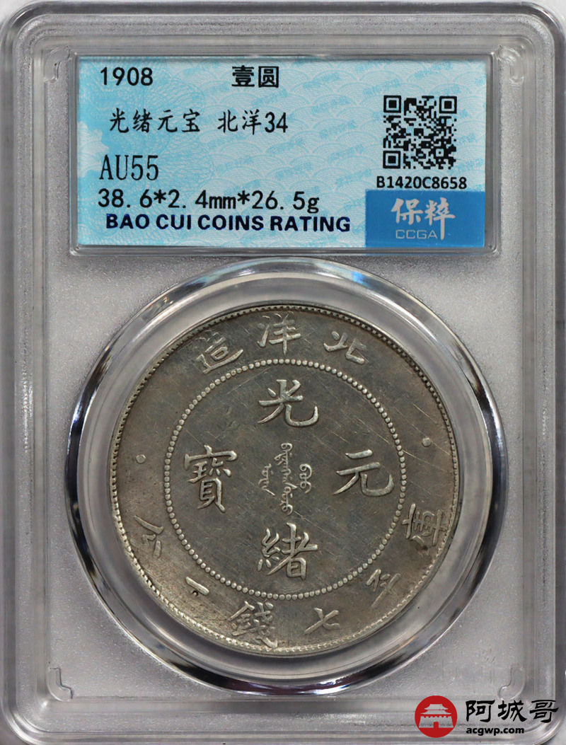 Lot:null 北洋34年七钱二分 转光 保粹评级 AU55