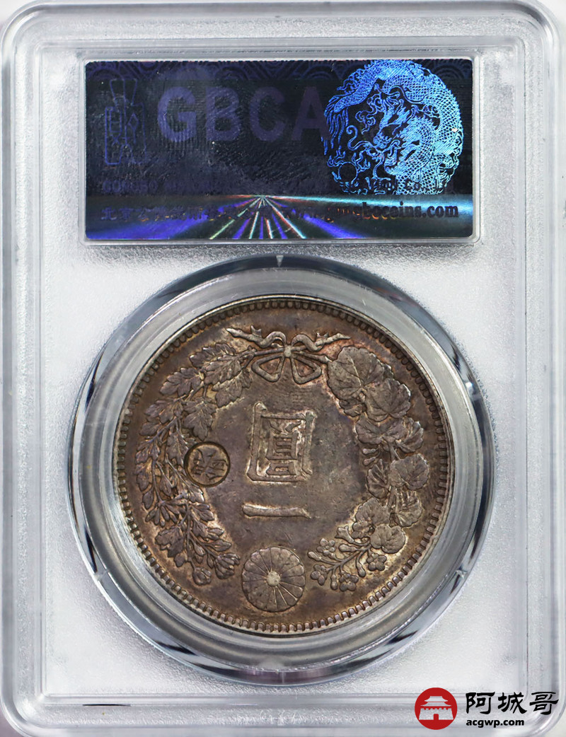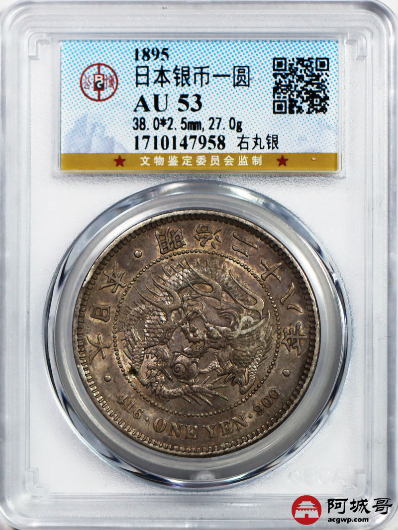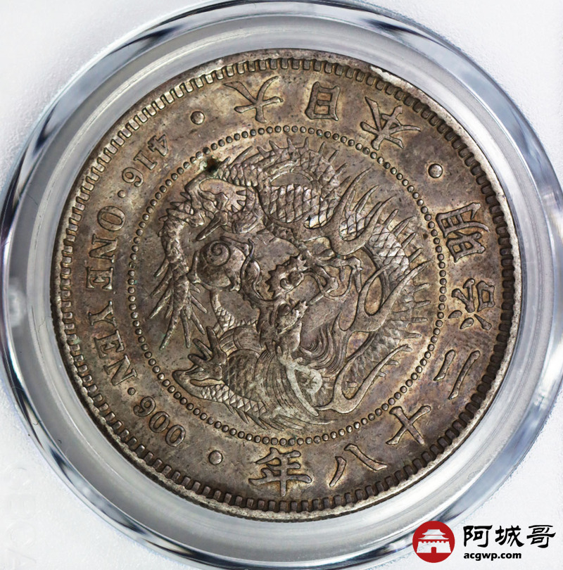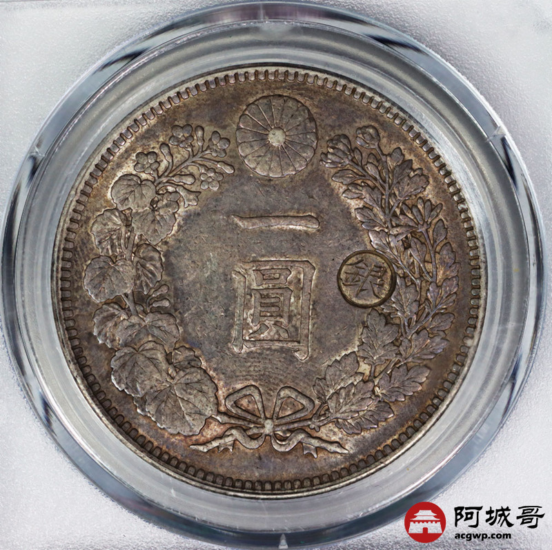 Lot:41 五彩明治二十八年壹圆 又丸银 公博 AU53