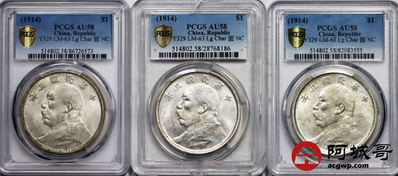 Lot:15 原汁原味 云南大头 滇版 地方版 高银 58分高分稀见 三年大头壹圆 PCGS AU58 三枚一组