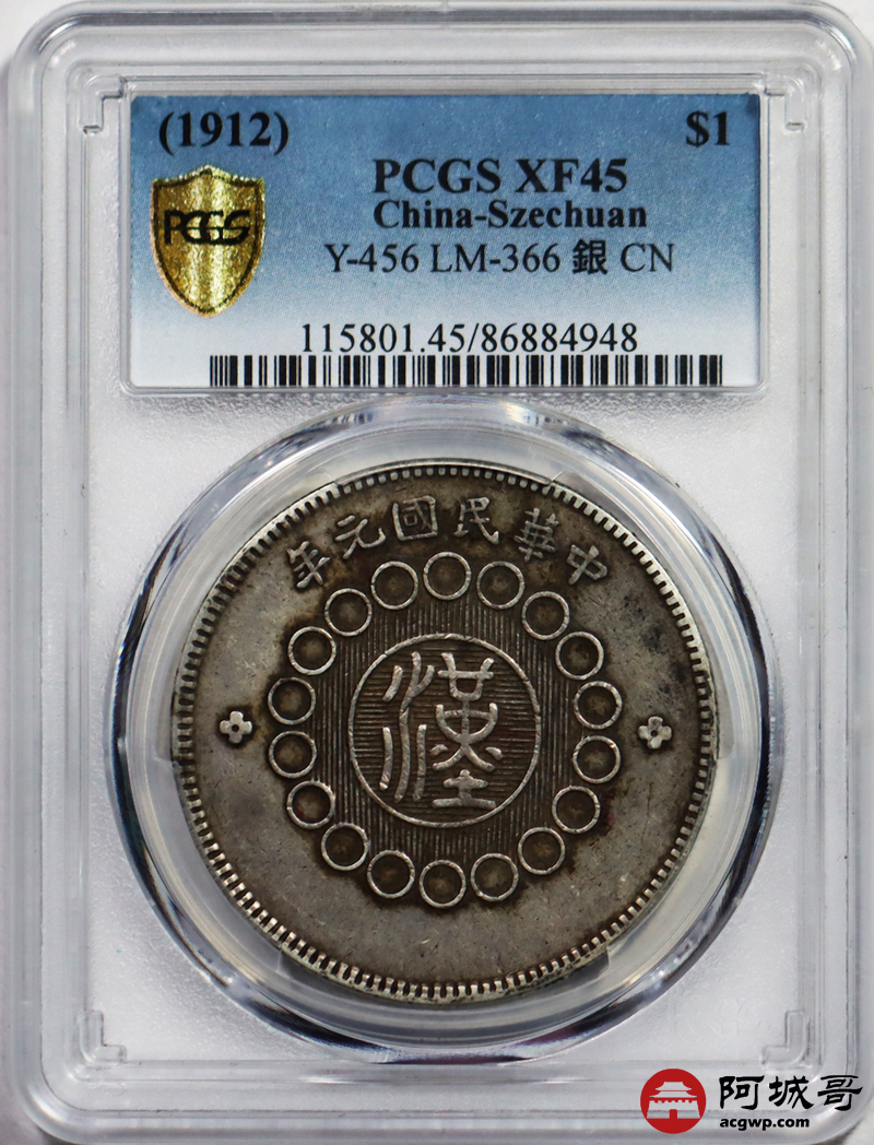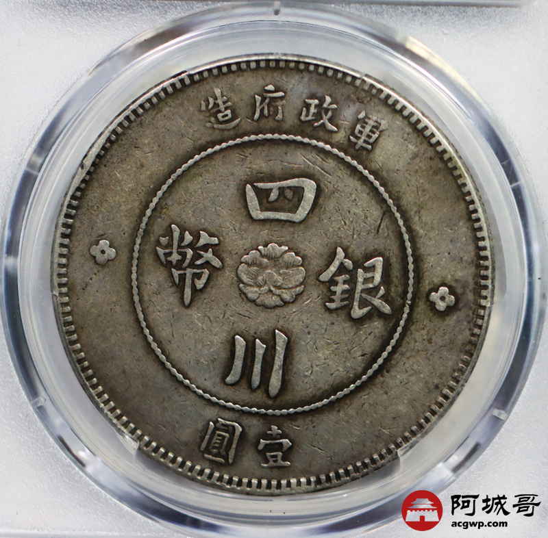Lot:29 原味老包浆 四川军政府壹圆 重庆三横背二毛版 PCGS XF45
