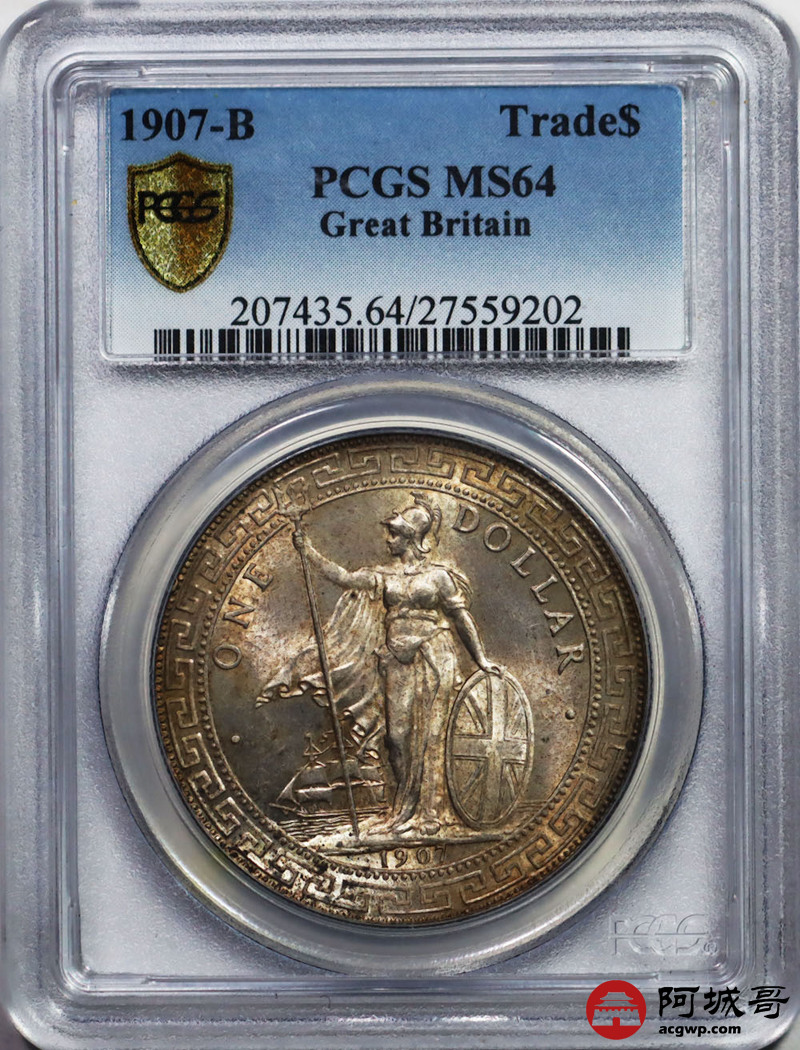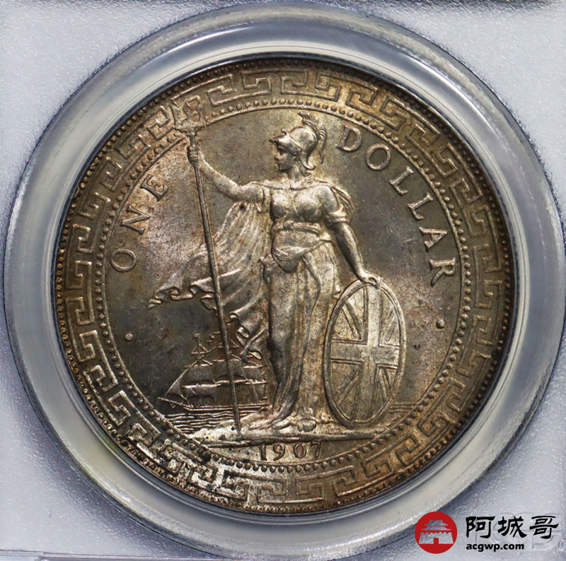 Lot:27 黄油彩 转光 1907年站洋壹圆 PCGS MS64