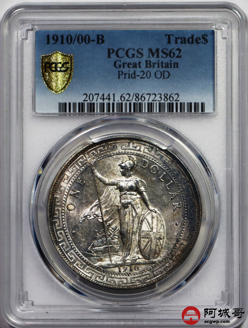 Lot:70 转光 1910年B版站洋壹圆 PCGS MS62