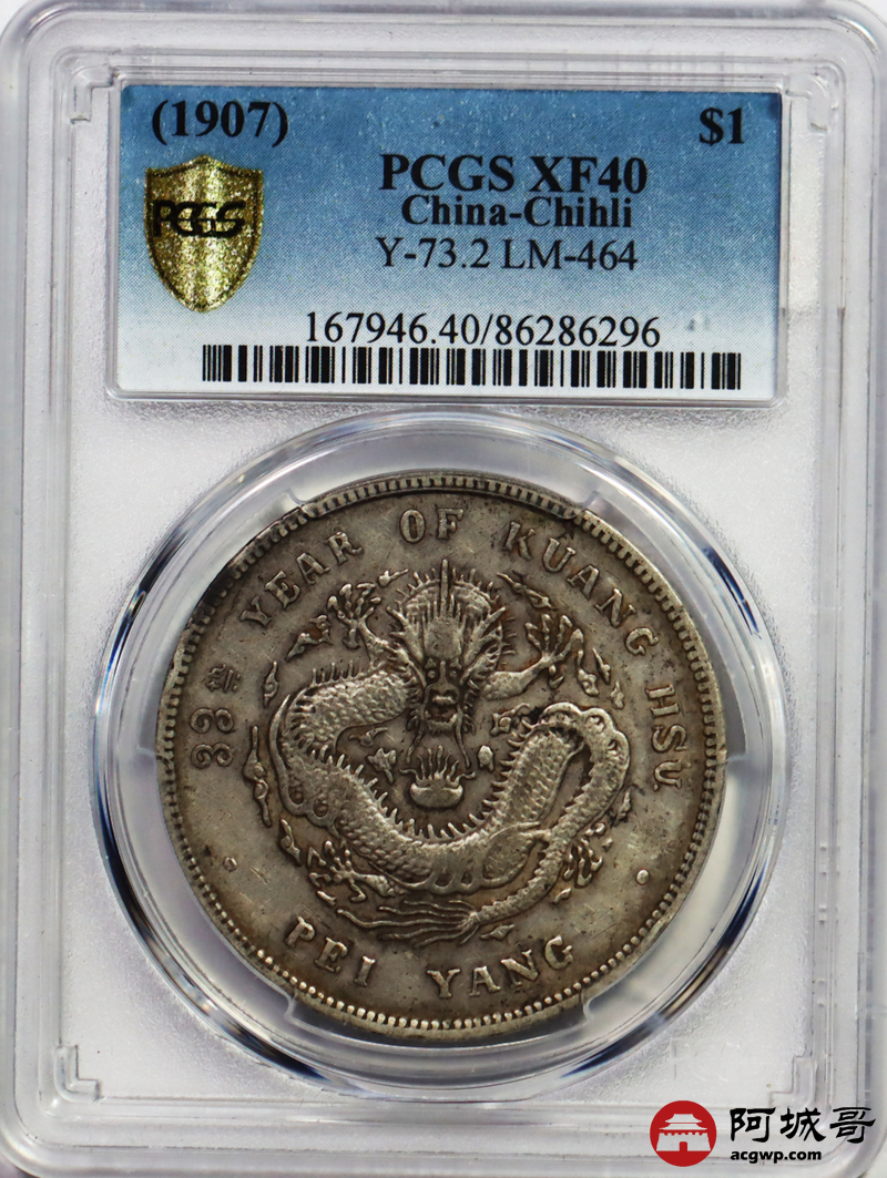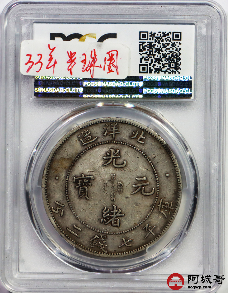 Lot:null 原味 老包浆 圈珠版 北洋33年龙洋 PCGS XF 40