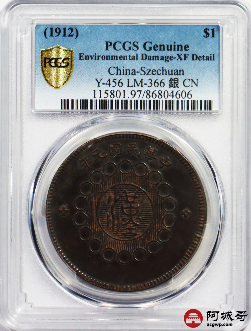 Lot:5 老包浆 深打 四川军政府壹圆 PCGS XF