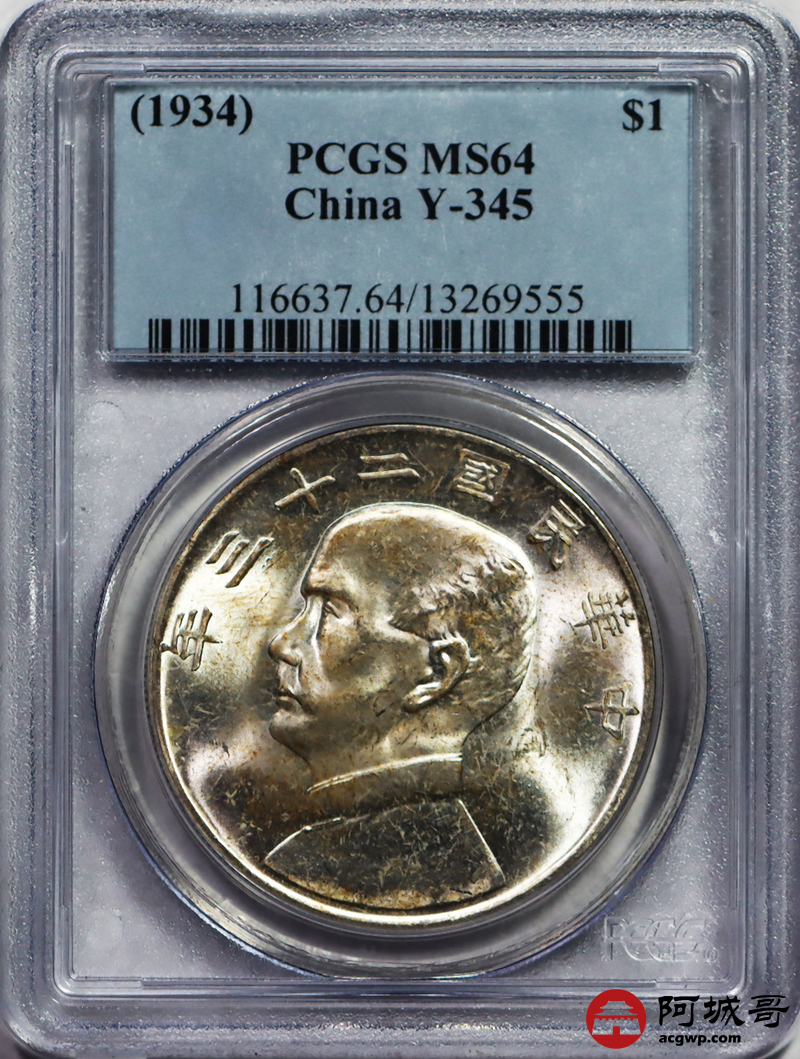 Lot:1 曝光 民国二十三年船洋 PCGS MS64