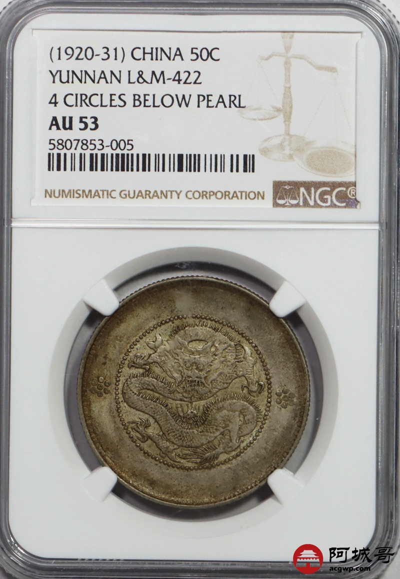 Lot:50 原味 云南困龙半圆 NGC AU53