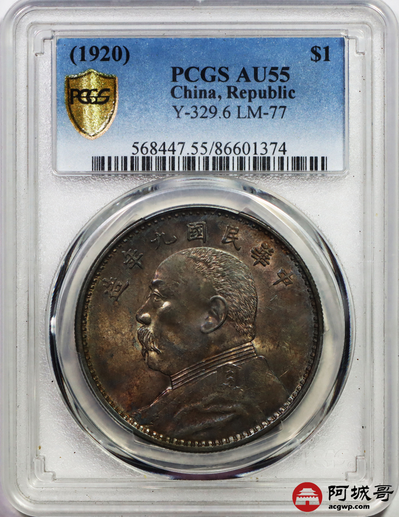 Lot:6 百年老彩转光 民国九年精发盒有松动 PCGS AU 55