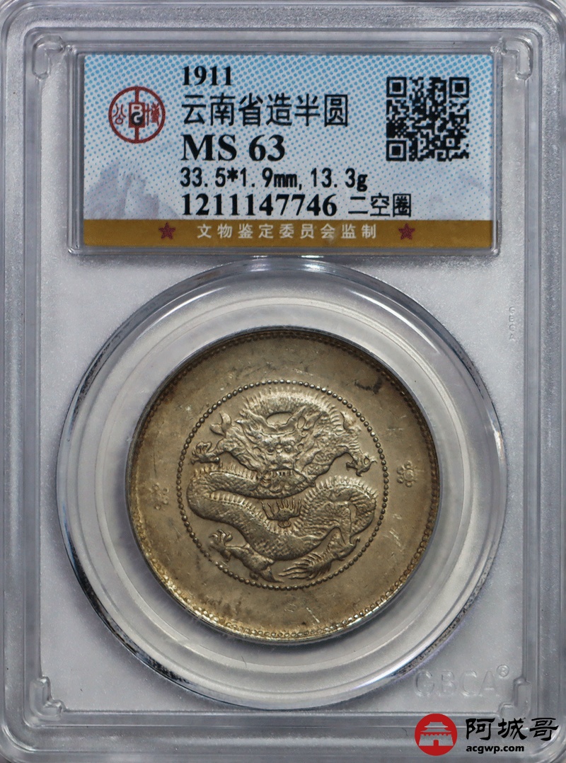 Lot:43 原味 转光 云南半圆 公博 MS 63