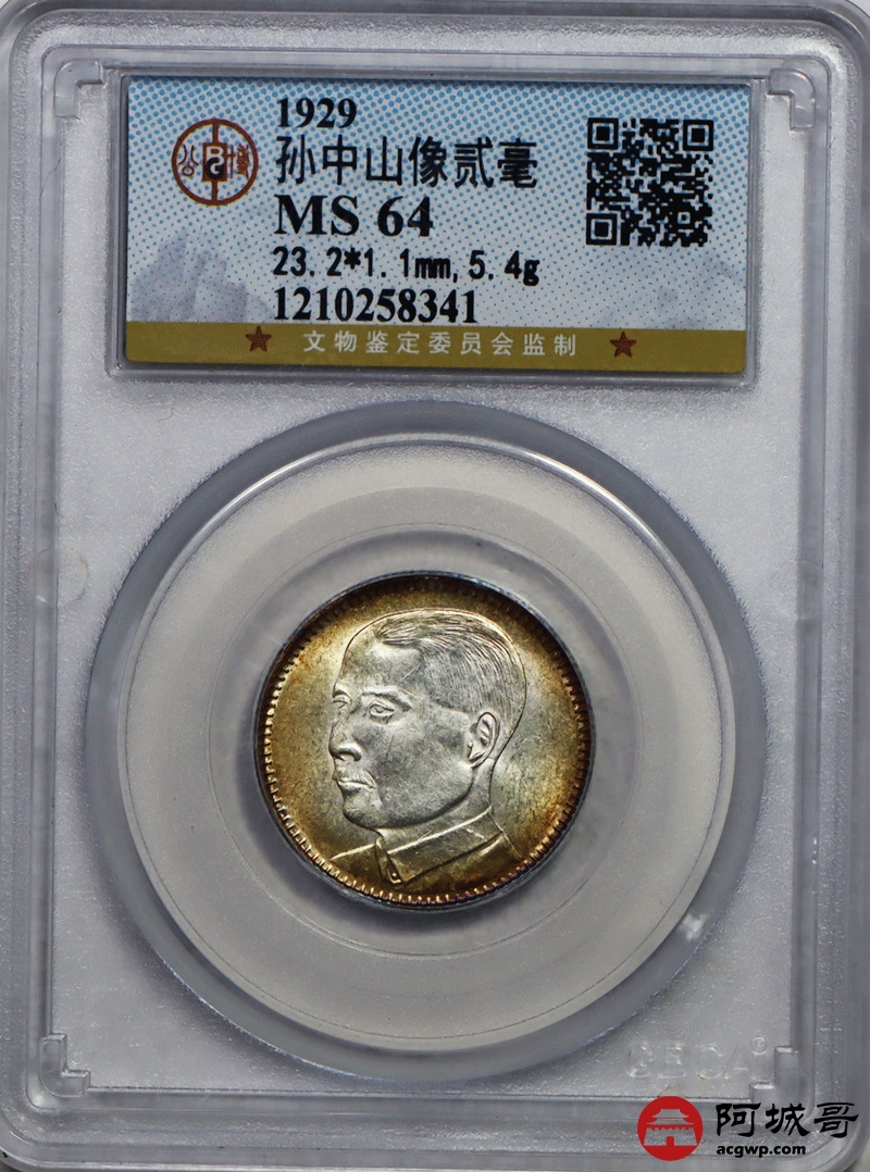 Lot:64 原味 金彩 孙像广东两角 公博 MS 64