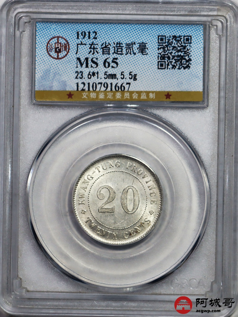 Lot:1 原光 民国元年广东两角 公博 MS 65