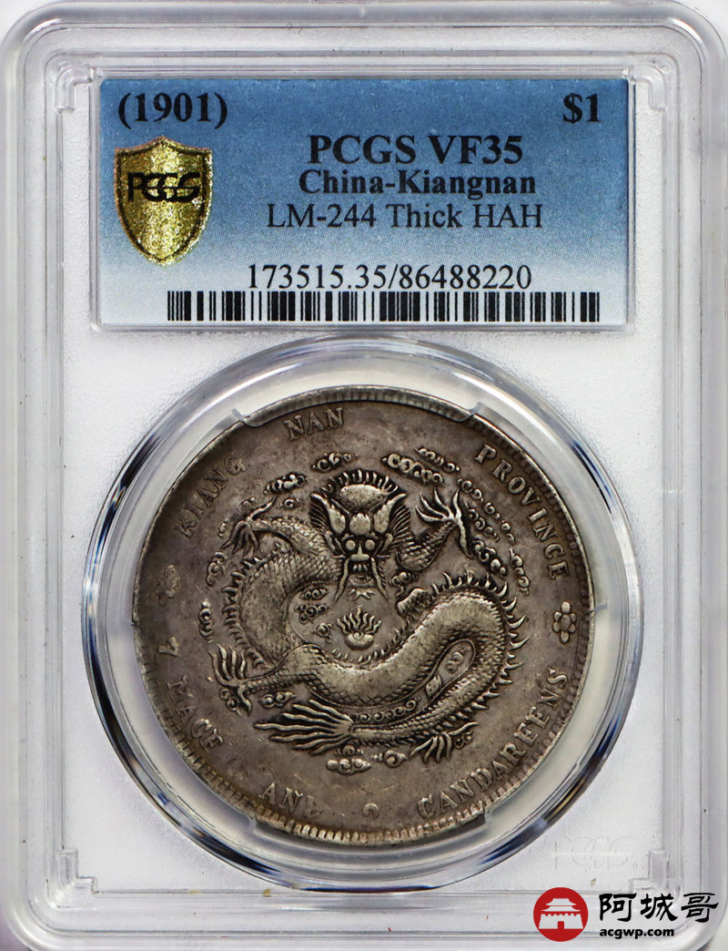 Lot:null 原味 老包浆 江南辛丑二千二分壹元 PCGS VF 35