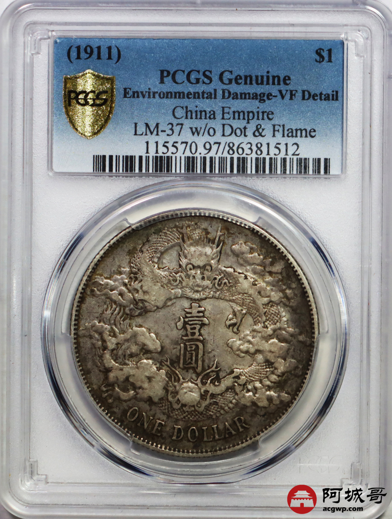 Lot:18 原味老包浆 大清宣三壹圆 PCGS VF