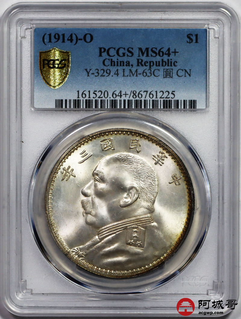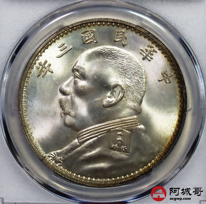 Lot:17 a极品五彩爆光三年大头O版三角元 低评状态 PCGS MS64+