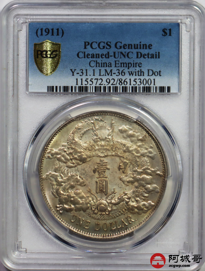 Lot:null 原味深打黄油光 大清宣三壹圆带点版 PCGS UNC