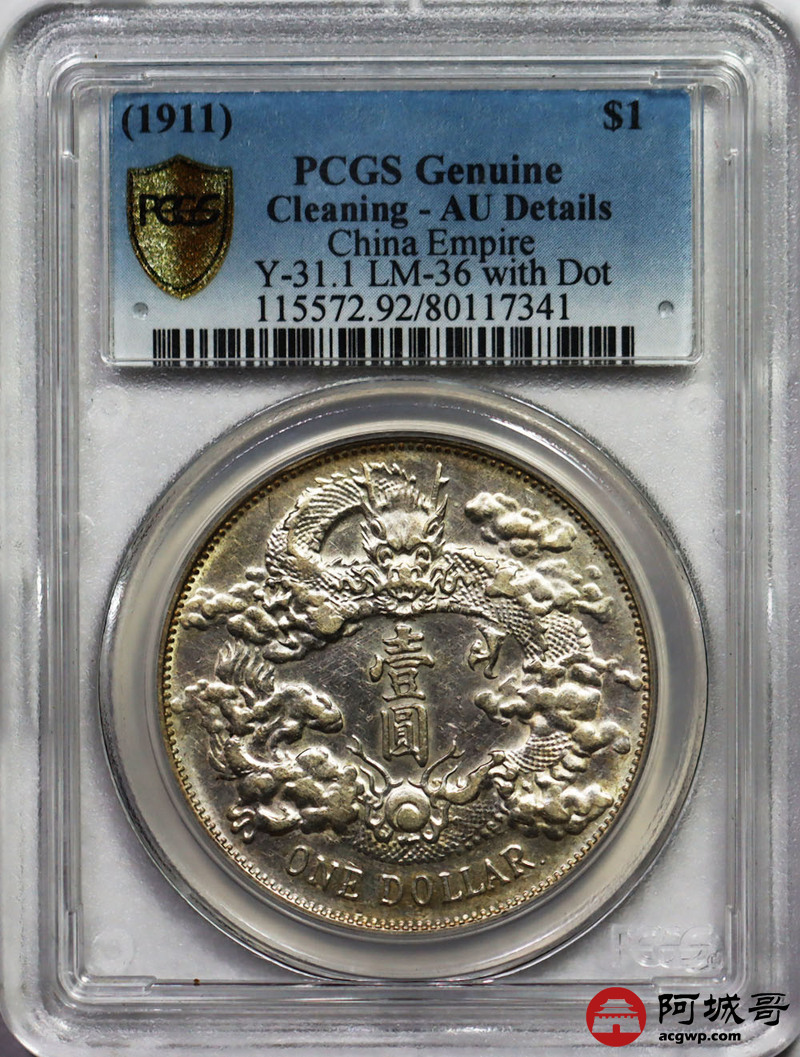 Lot:null 底光大清宣三壹圆带点版 PCGS AU