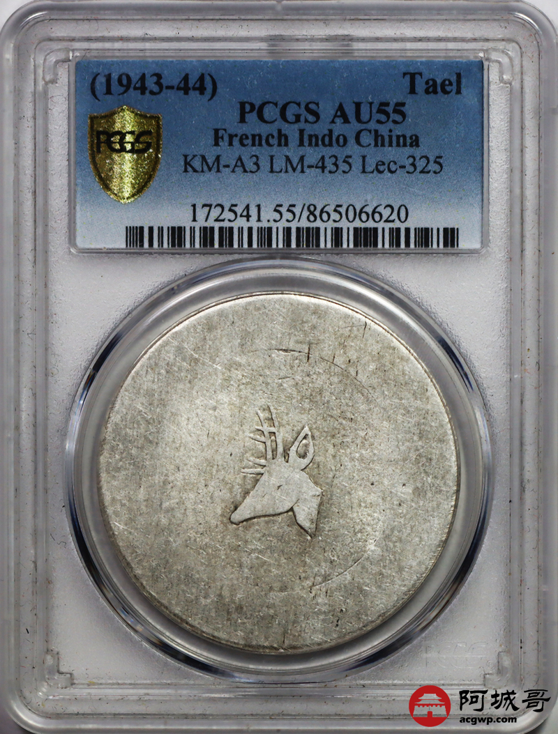 Lot:null 底光 正银一两小鹿头 PCGS AU55盒小磕