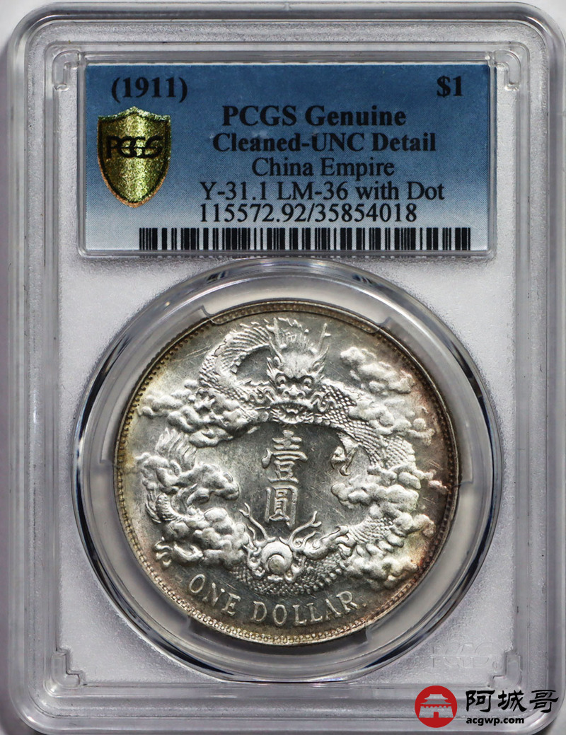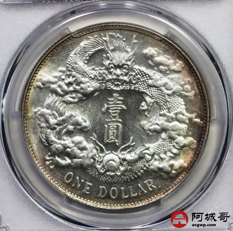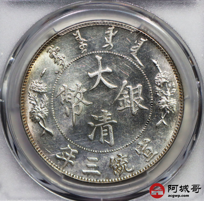 Lot:null 原光环彩 大清宣三壹圆带点版 PCGS UNC