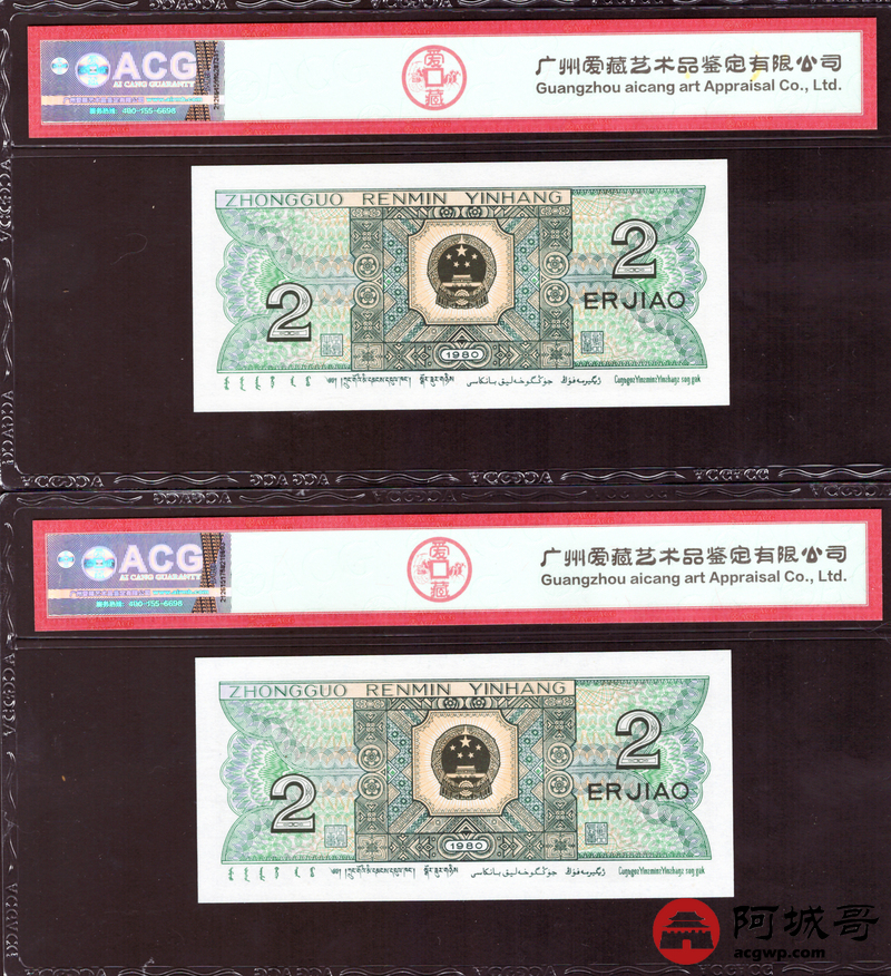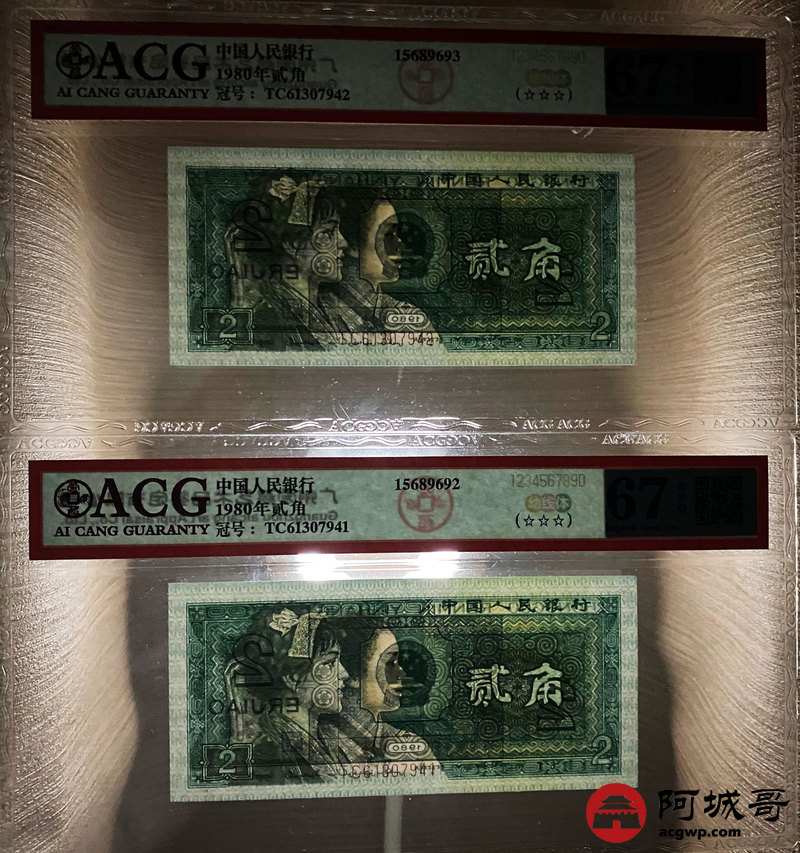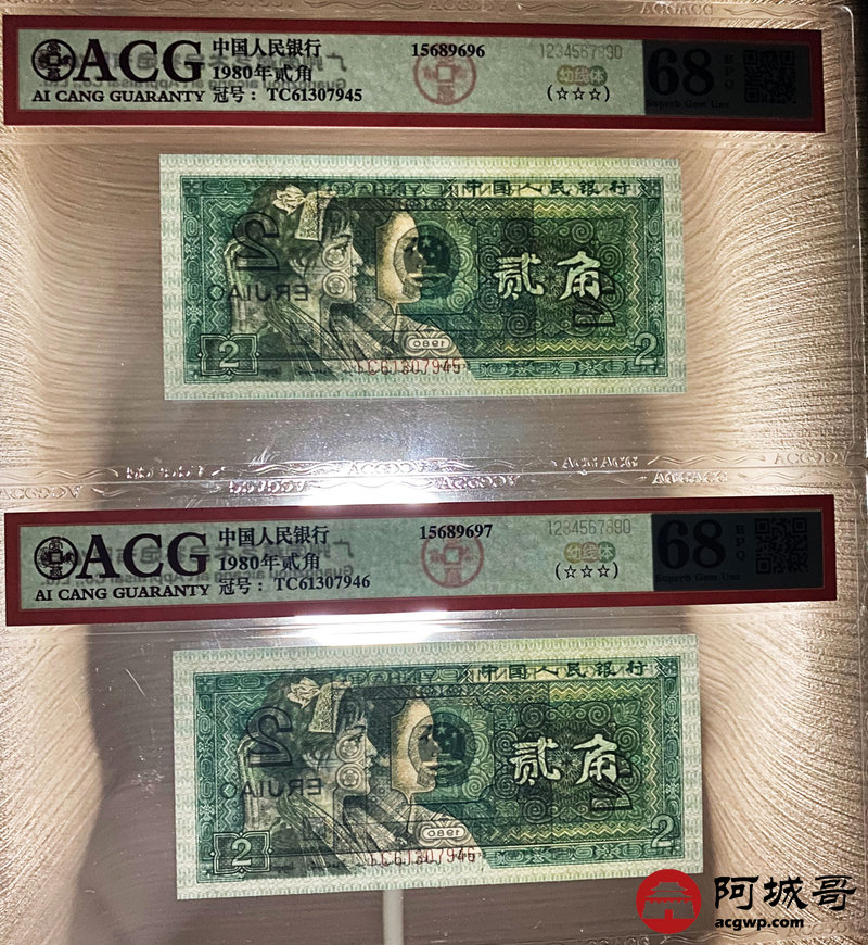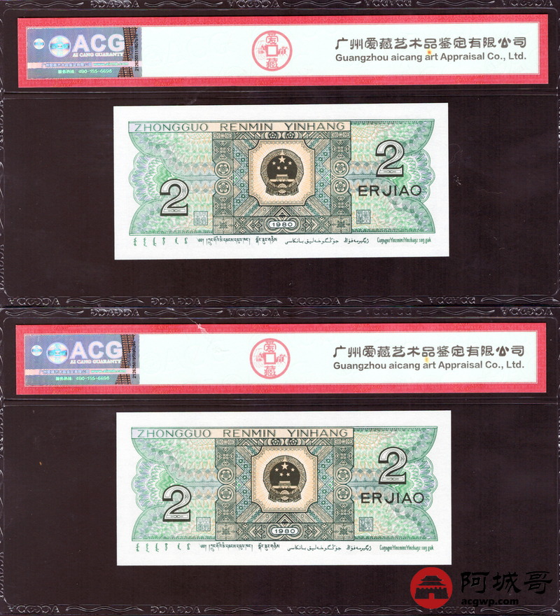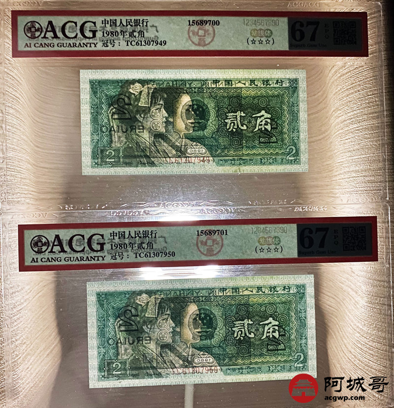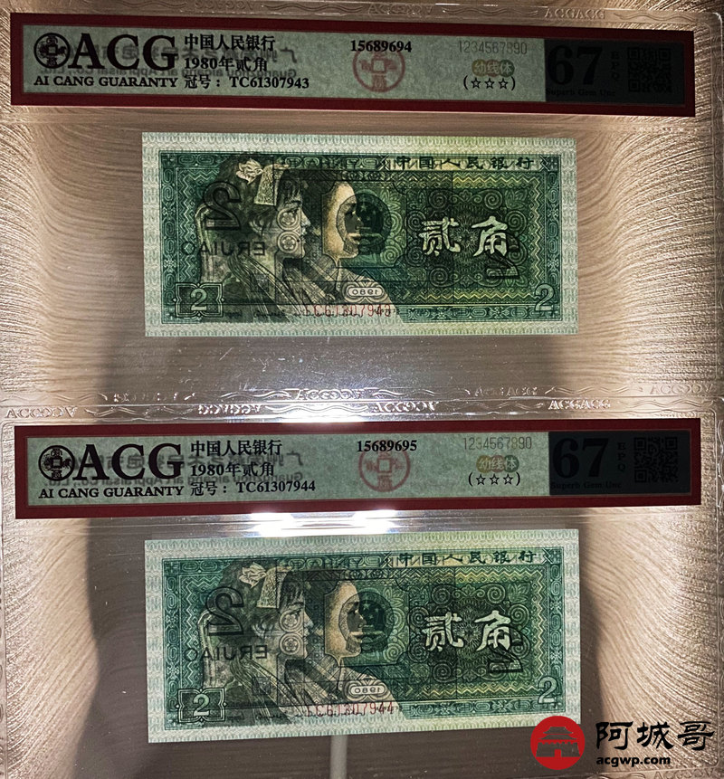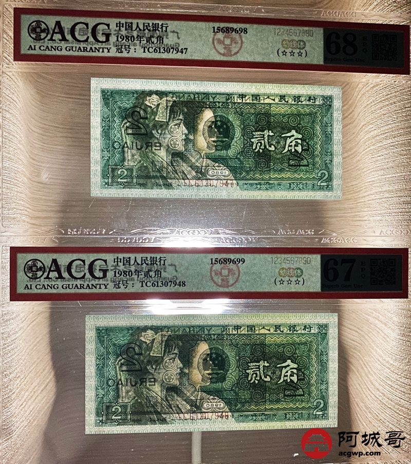 Lot:40 四版 1980年 贰角 ACG 68、67EPQ 幼线体 十枚连号一组
