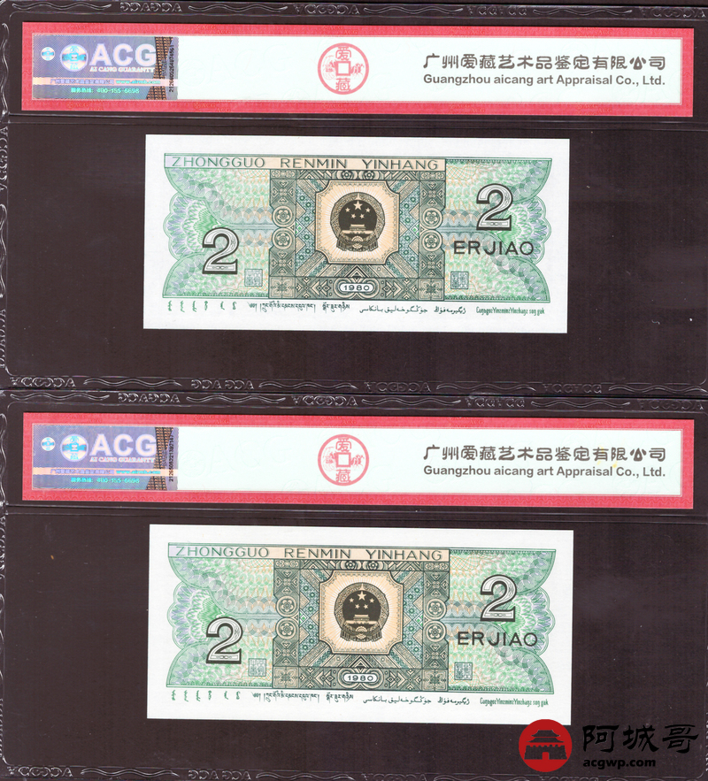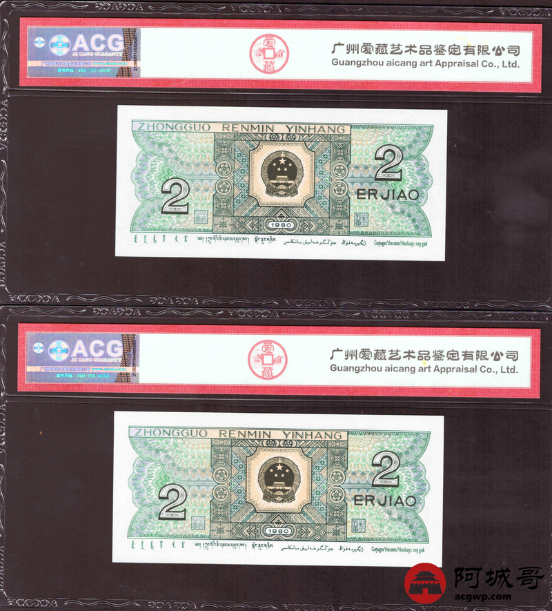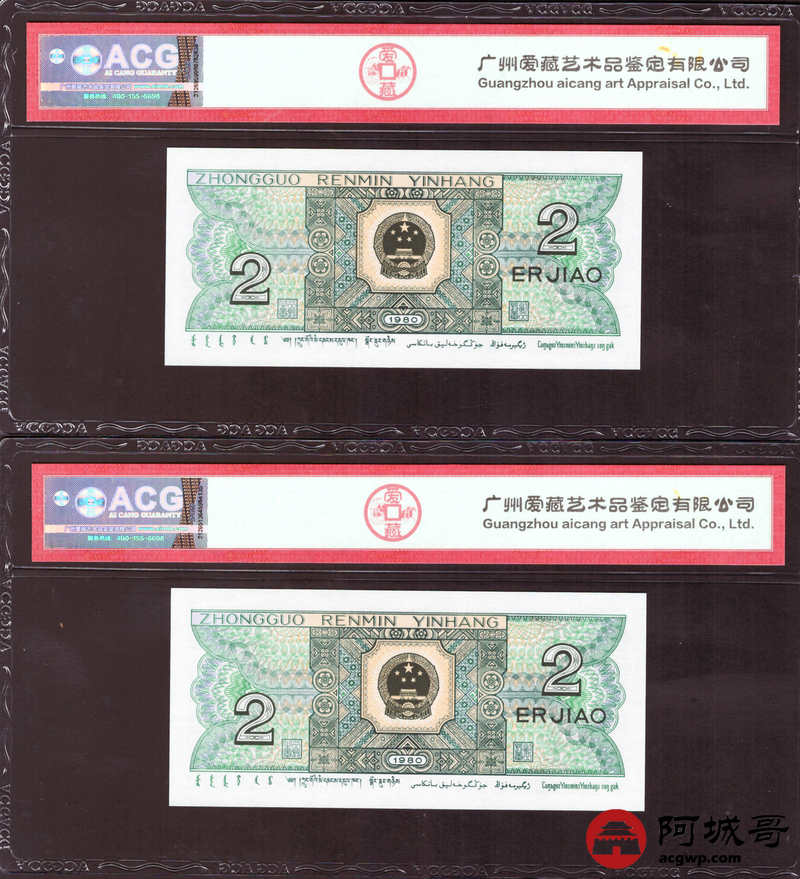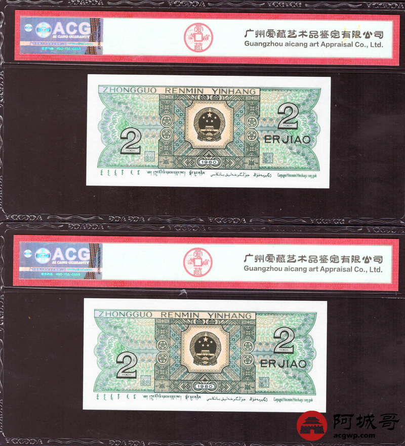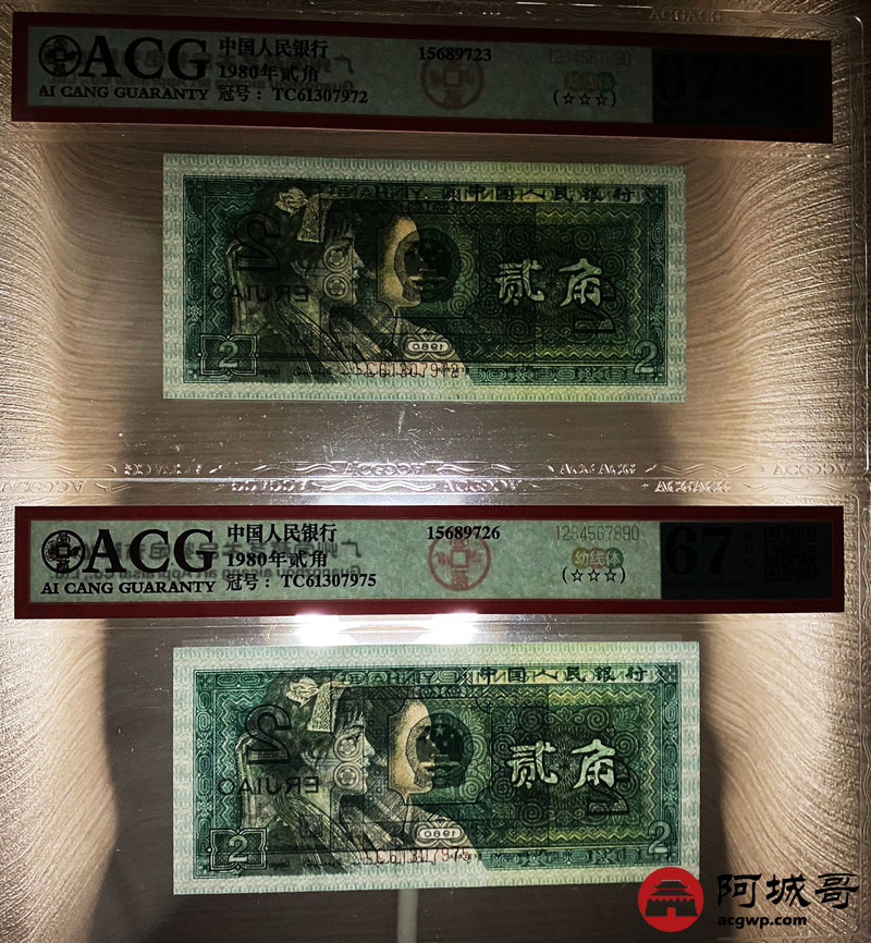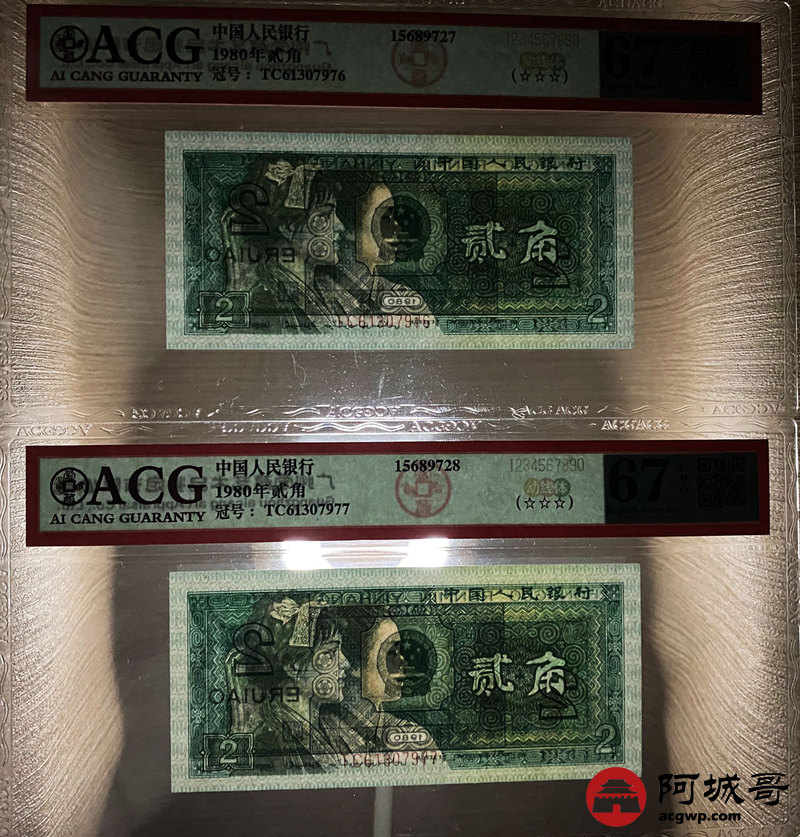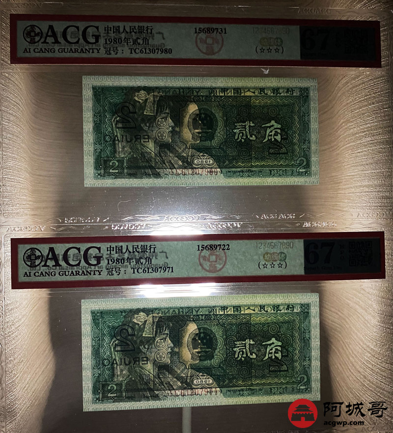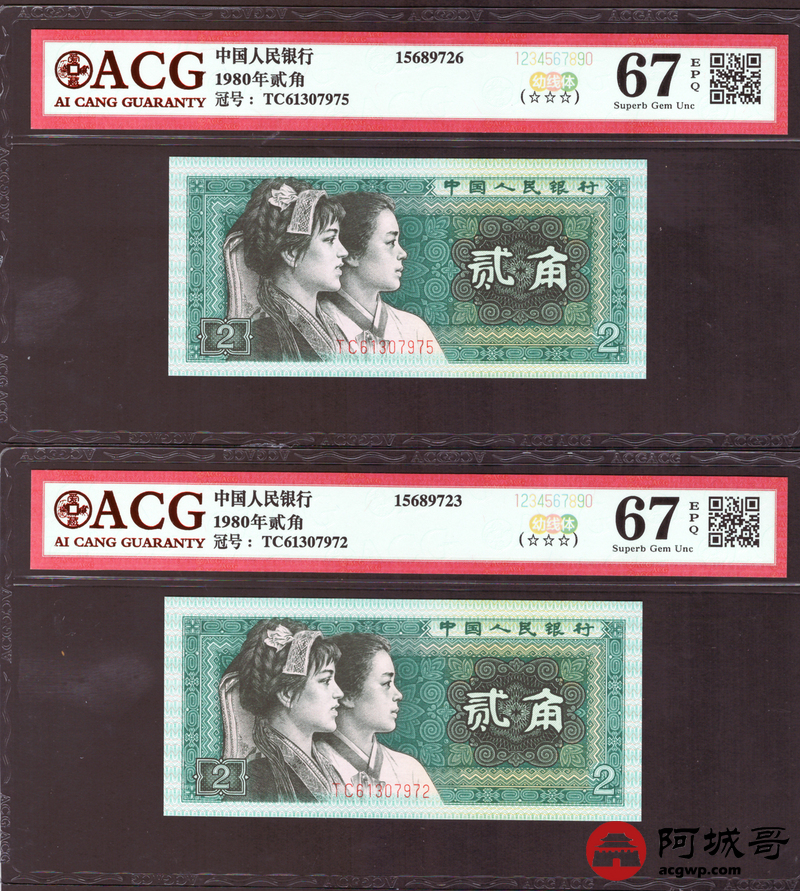 Lot:35 四版 1980年 贰角 ACG 67EPQ 幼线体 十枚连号一组 好号无4