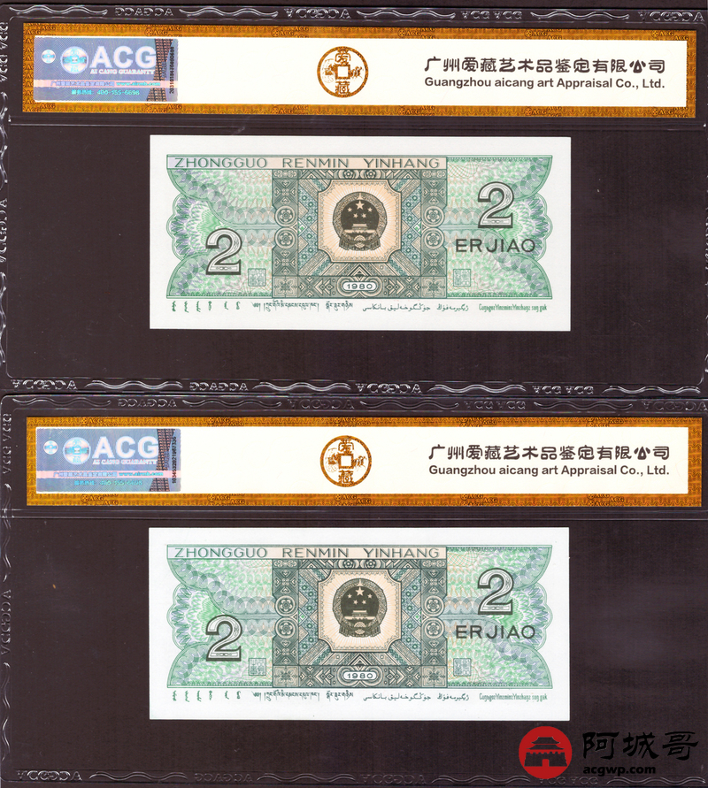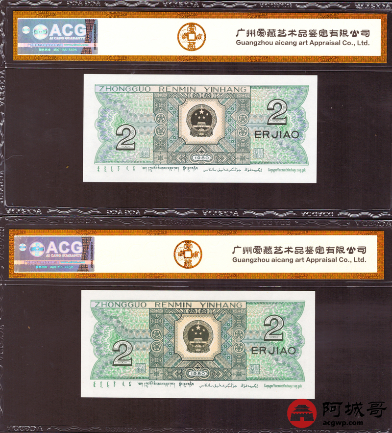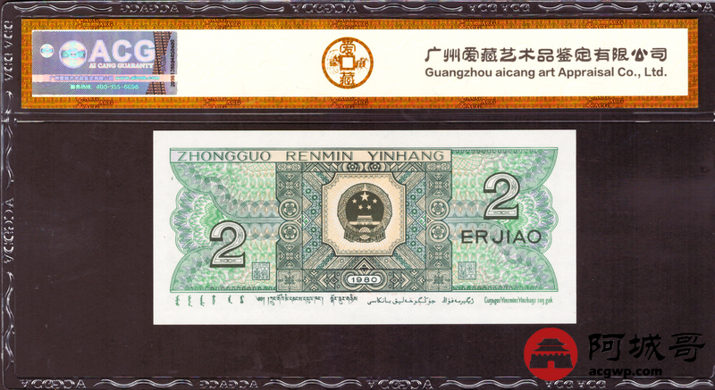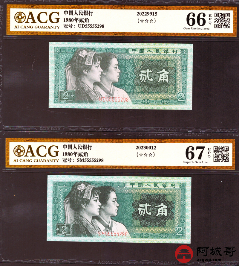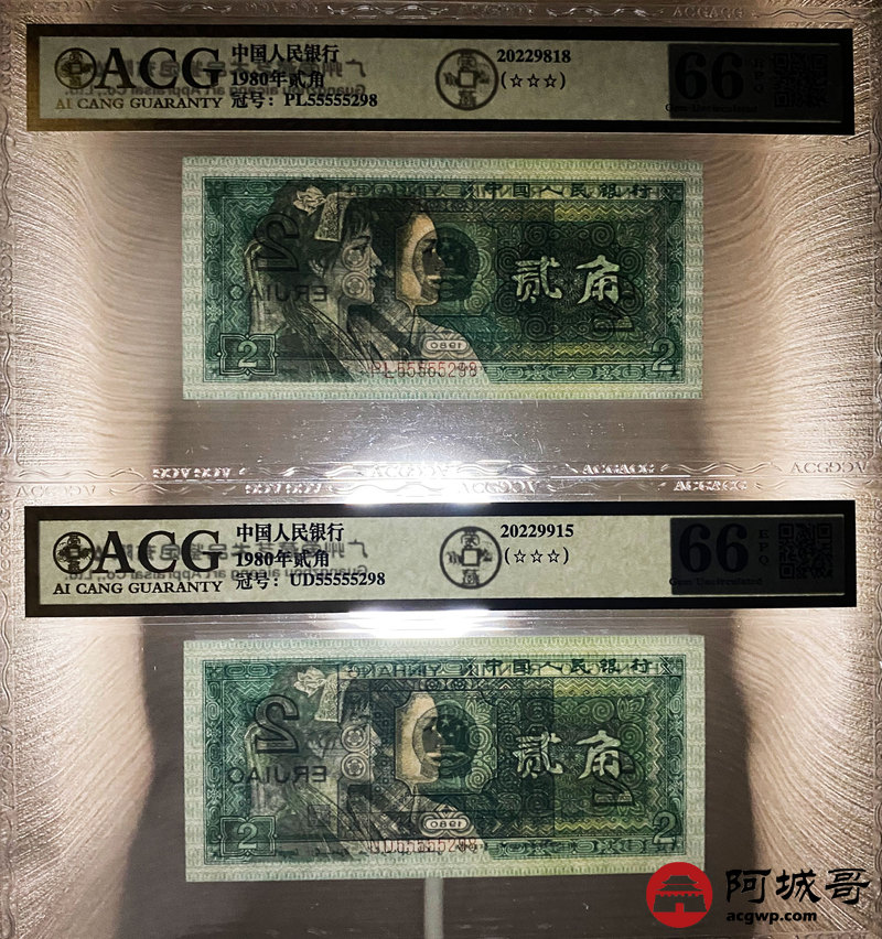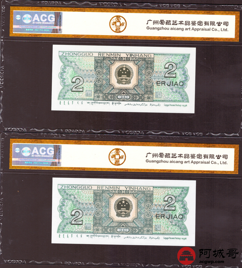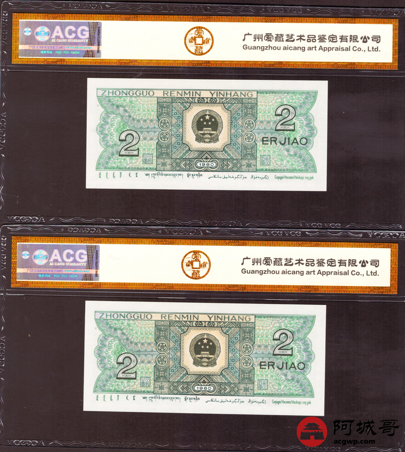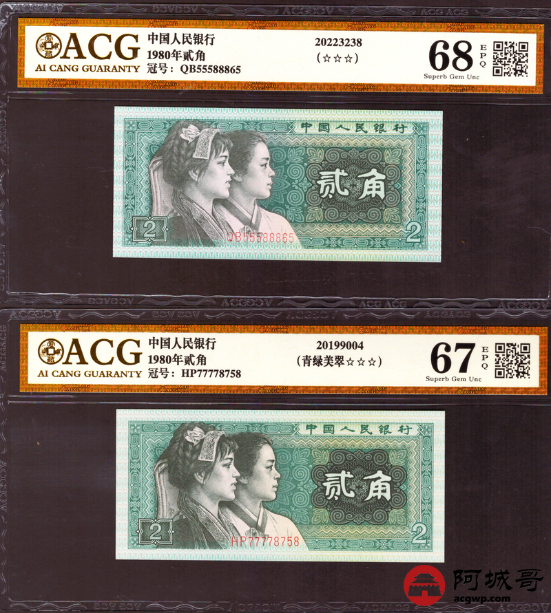 Lot:39 四版 1980年 贰角 ACG 66EPQ、 67EPQ 、68EPQ 九枚一组 内有青绿美翠、倒置号