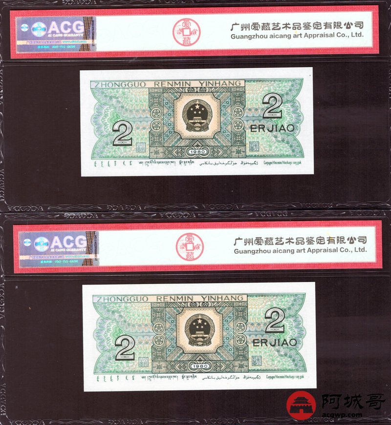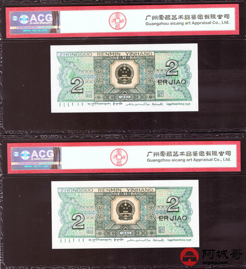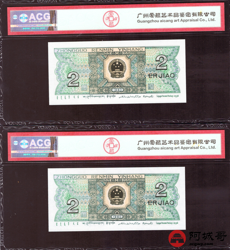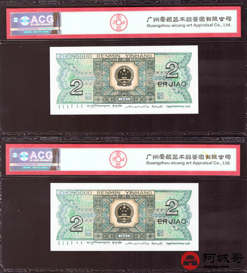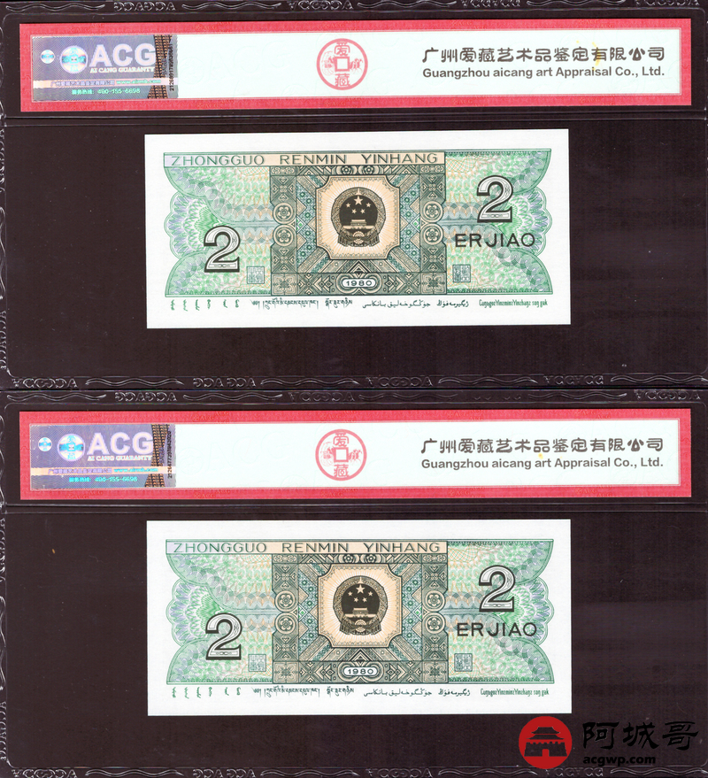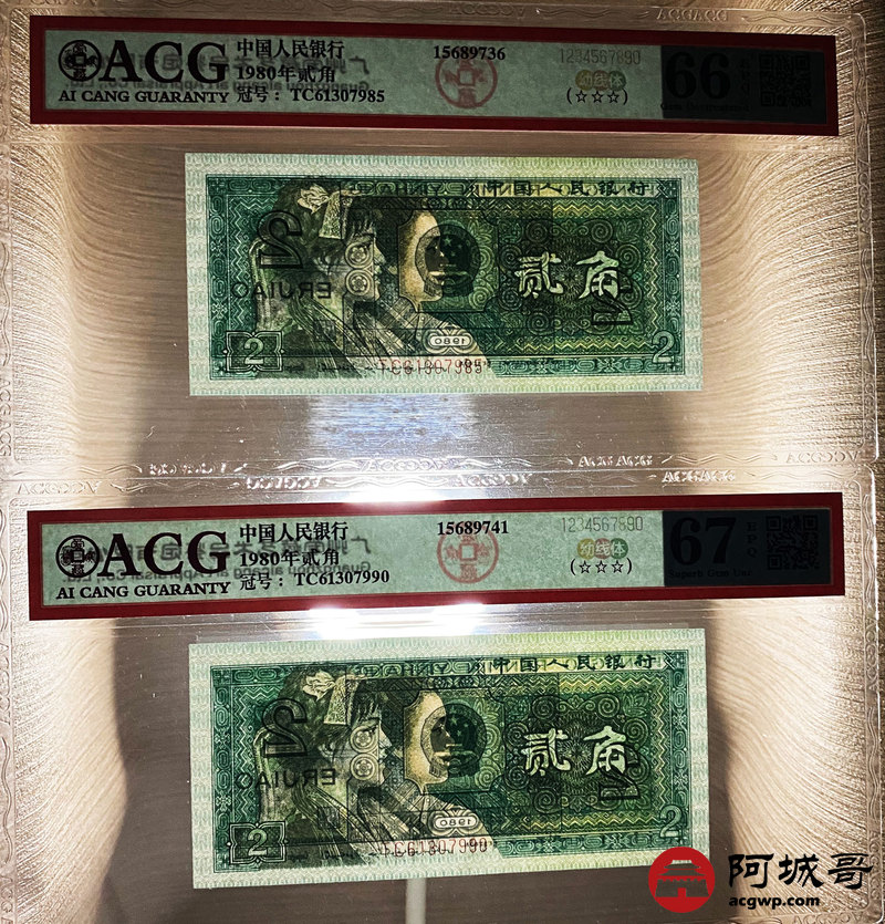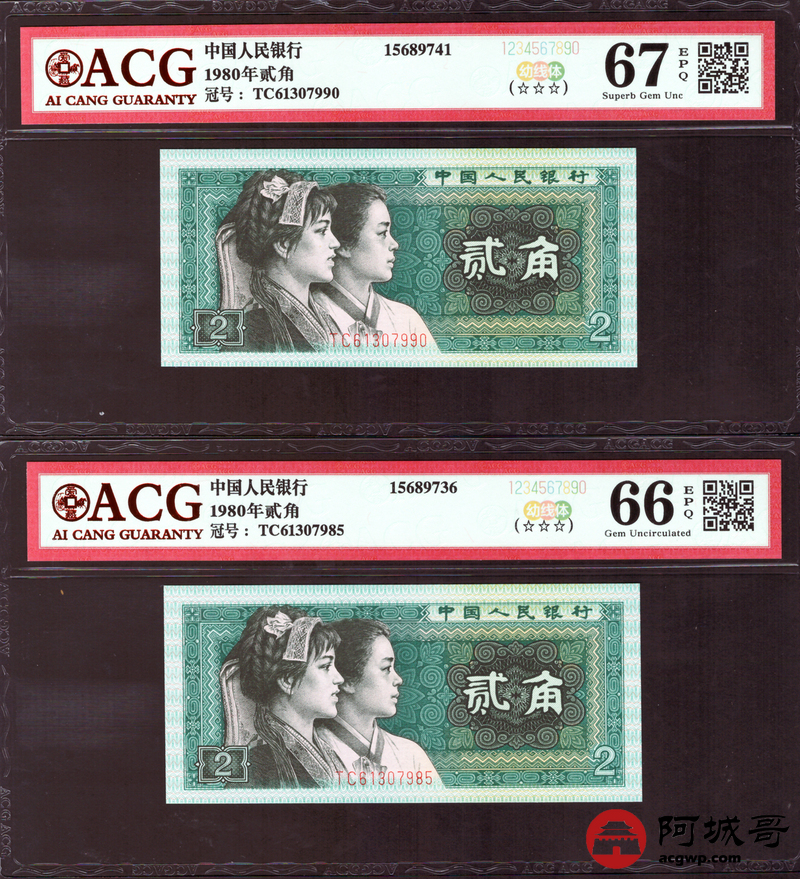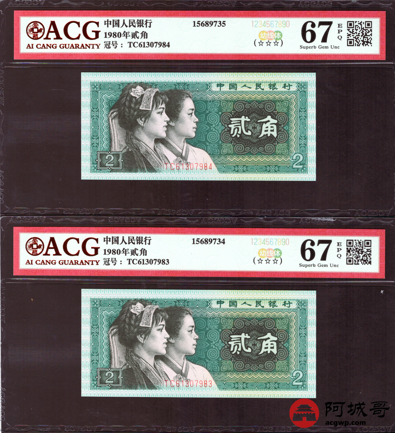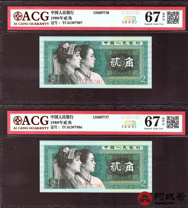 Lot:24 四版 1980年 贰角 幼线体 ACG 67EPQ 好号无47 十枚连号一组