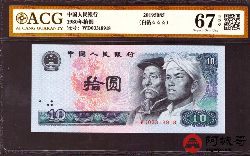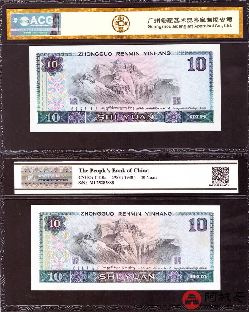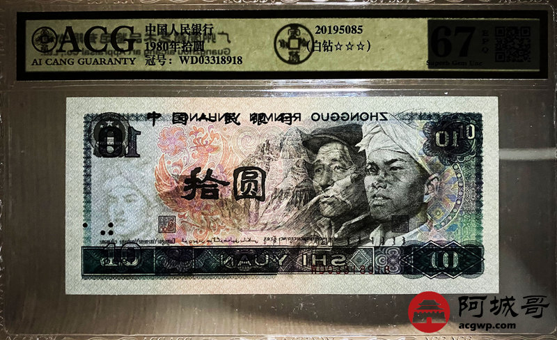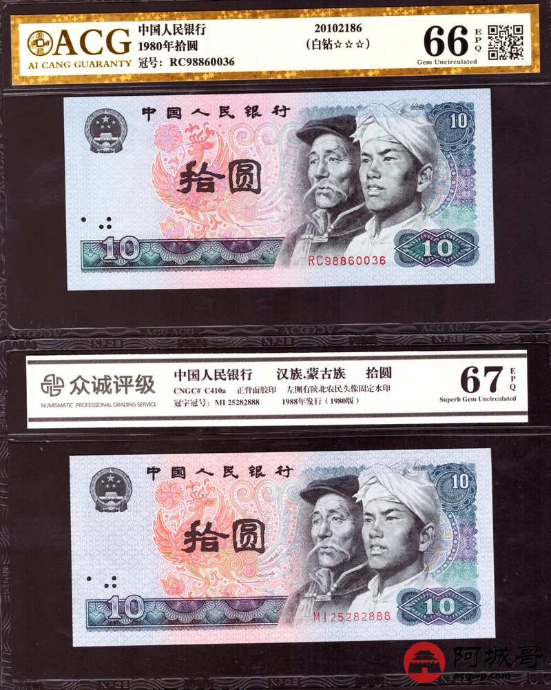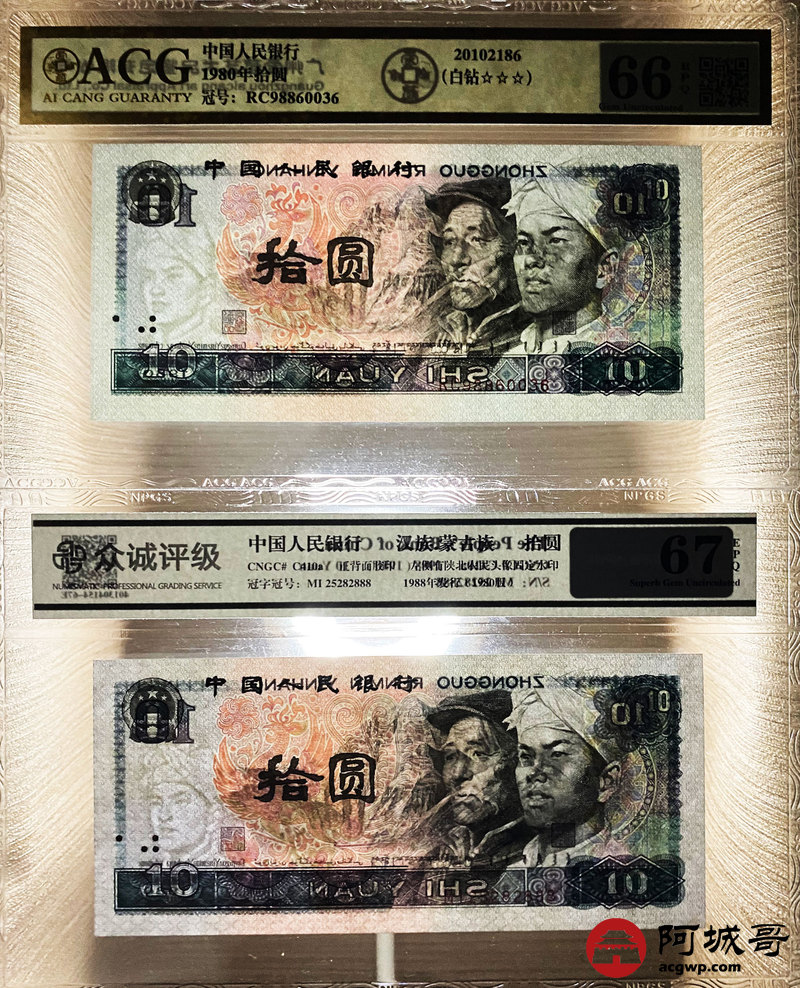 Lot:25 四版 1980年 拾圆 三枚一组 众诚评级 67EPQ ACG 67EPQ、 66EPQ