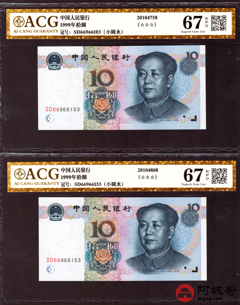 Lot:31 10元三张 三枚一组 ACG 67EPQ 好号无47 内有一张豹子号