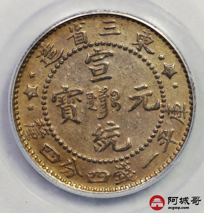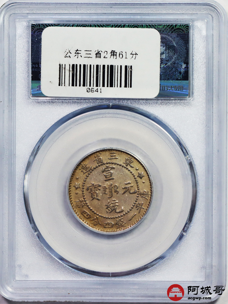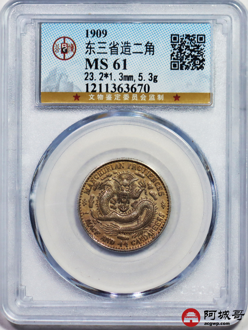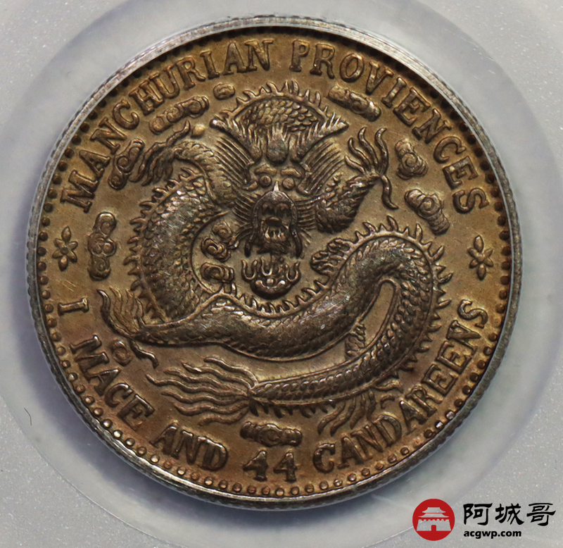 Lot:57 黄油彩东三省宣统一钱四分四厘毛角龙 公博 MS61