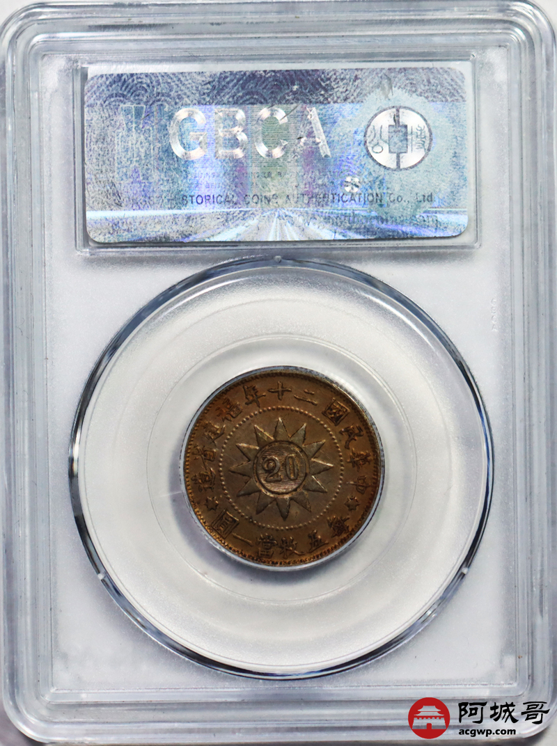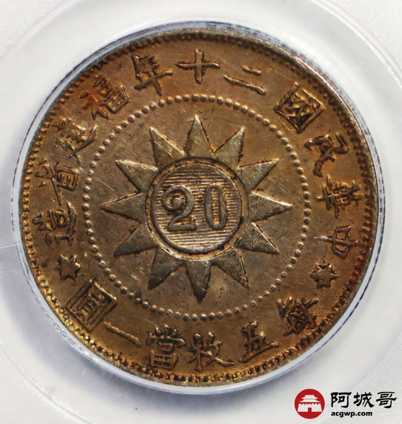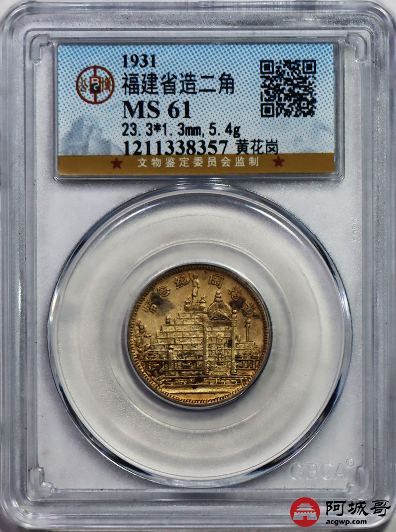 Lot:11 金彩包浆民国二十年福建黄花岗贰角 公博 MS61