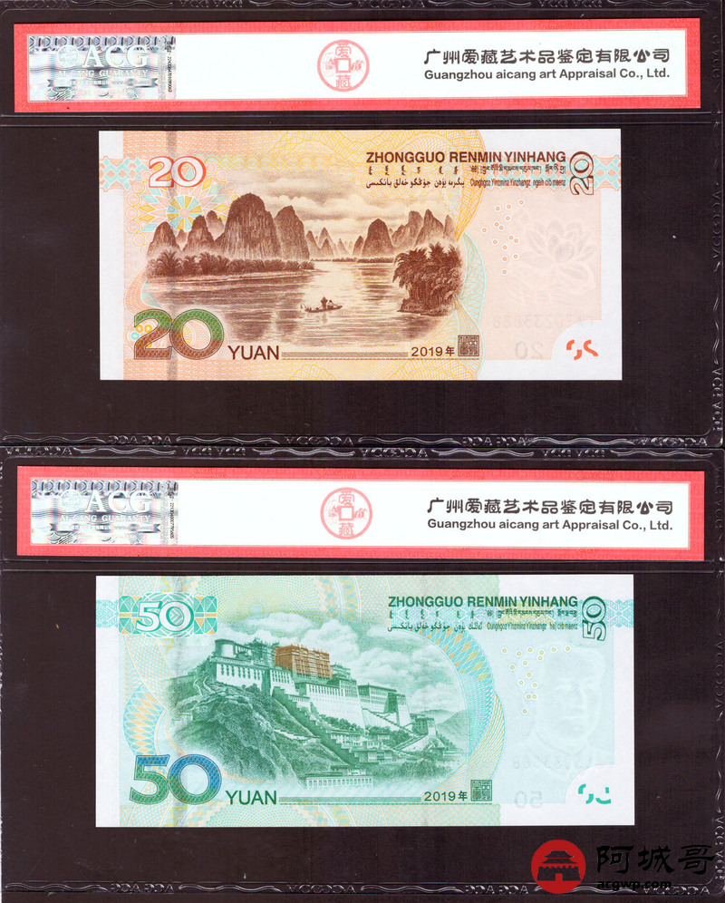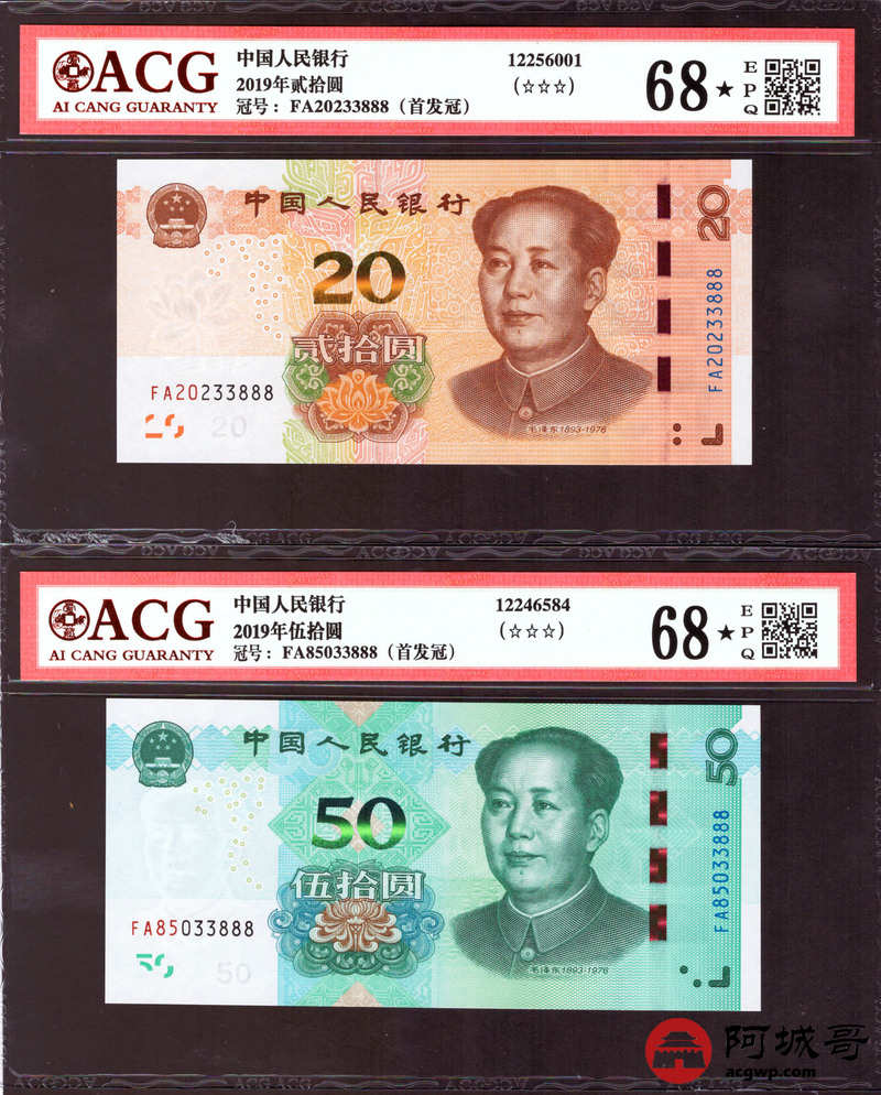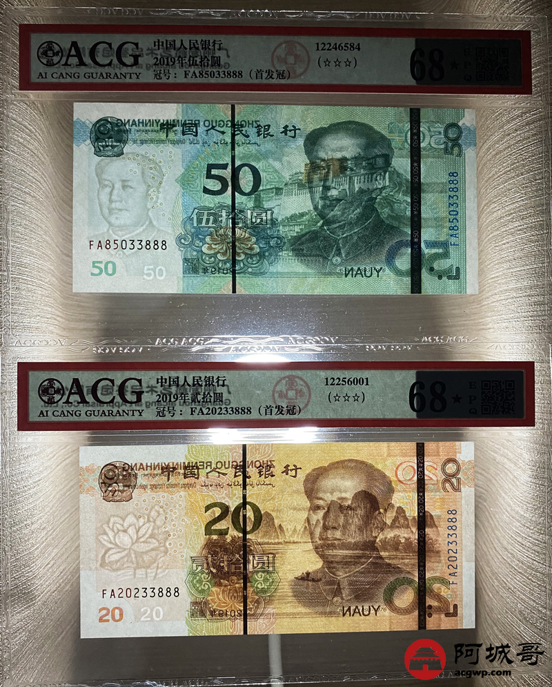 Lot:32 2019年 伍拾圆、贰拾元 两枚一组 ACG 68EPQ 尾5同33888