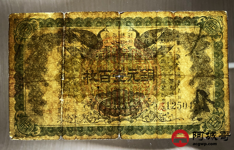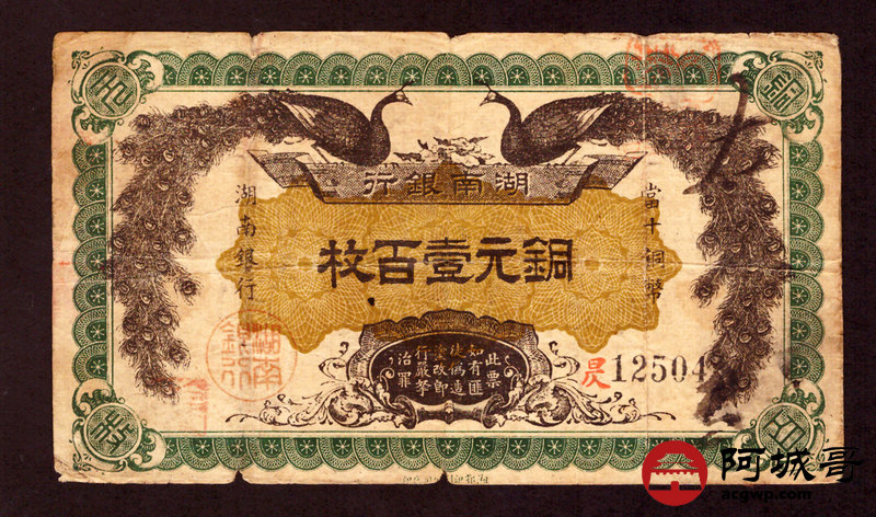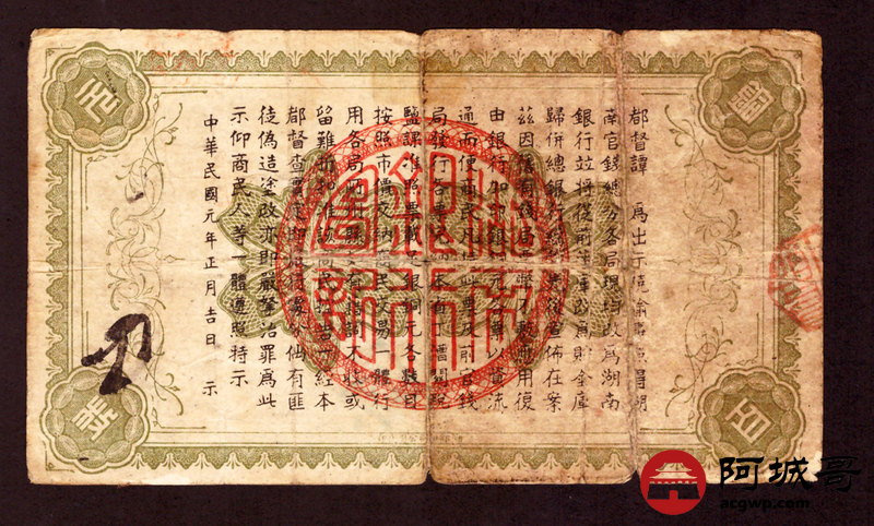 Lot:21 湖南银行 民国元年 铜元壹佰枚 7成新