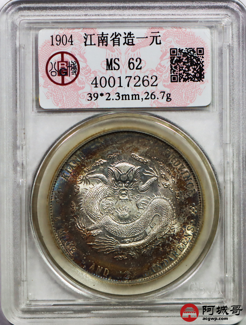 Lot:null 原光 五彩 江南甲辰龙洋 七钱二分 公博 MS 62