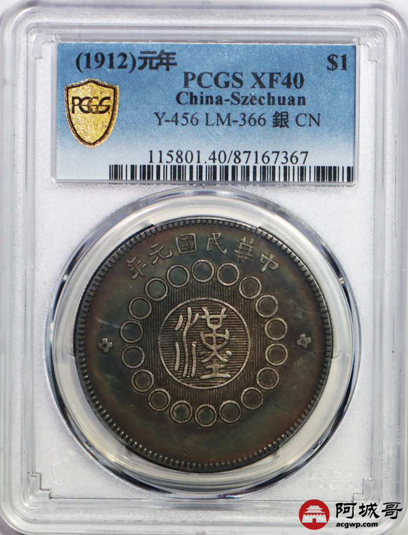 Lot:null 原味 五彩包浆 四川大汉 壹元 PCGS XF 40