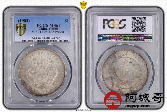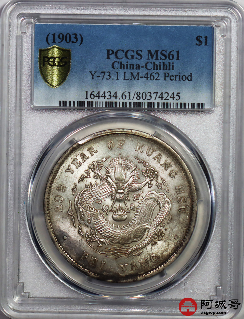 Lot:25 原光 粉彩光 北洋29年龙洋 七钱二分 PCGS MS 61