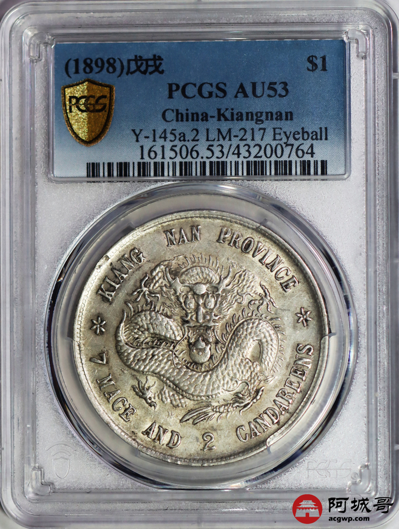 Lot:6 黄油底光爆龙鳞江南戊戌七钱二分 PCGS AU53