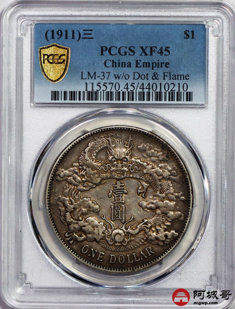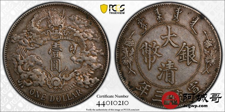Lot:37 原味老包浆 大清宣三壹圆 PCGS XF45
