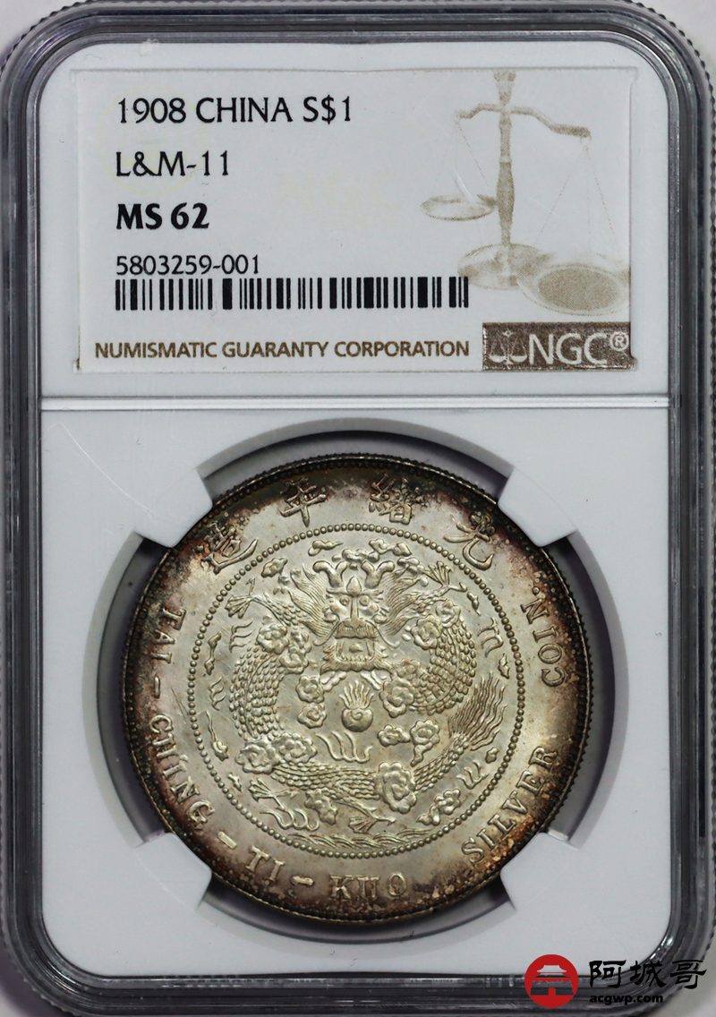 Lot:7 环彩转光 造币总厂七钱二分NGC MS62