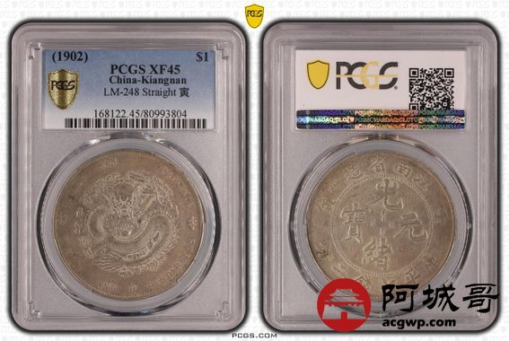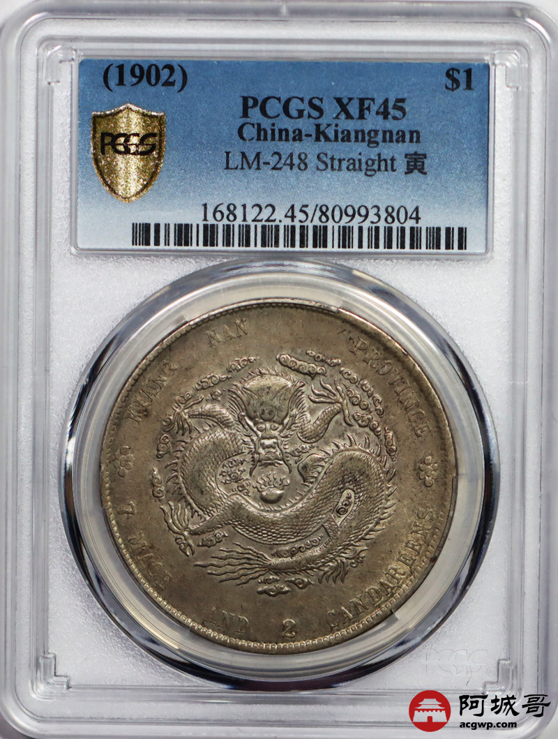 Lot:35 原味 底光 传世粉彩 江南 壬寅 龙洋 七钱二分 PCGS XF 45