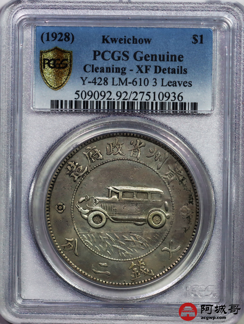 Lot:14 原味 贵州 汽车币 壹元三根草 PCGS XF