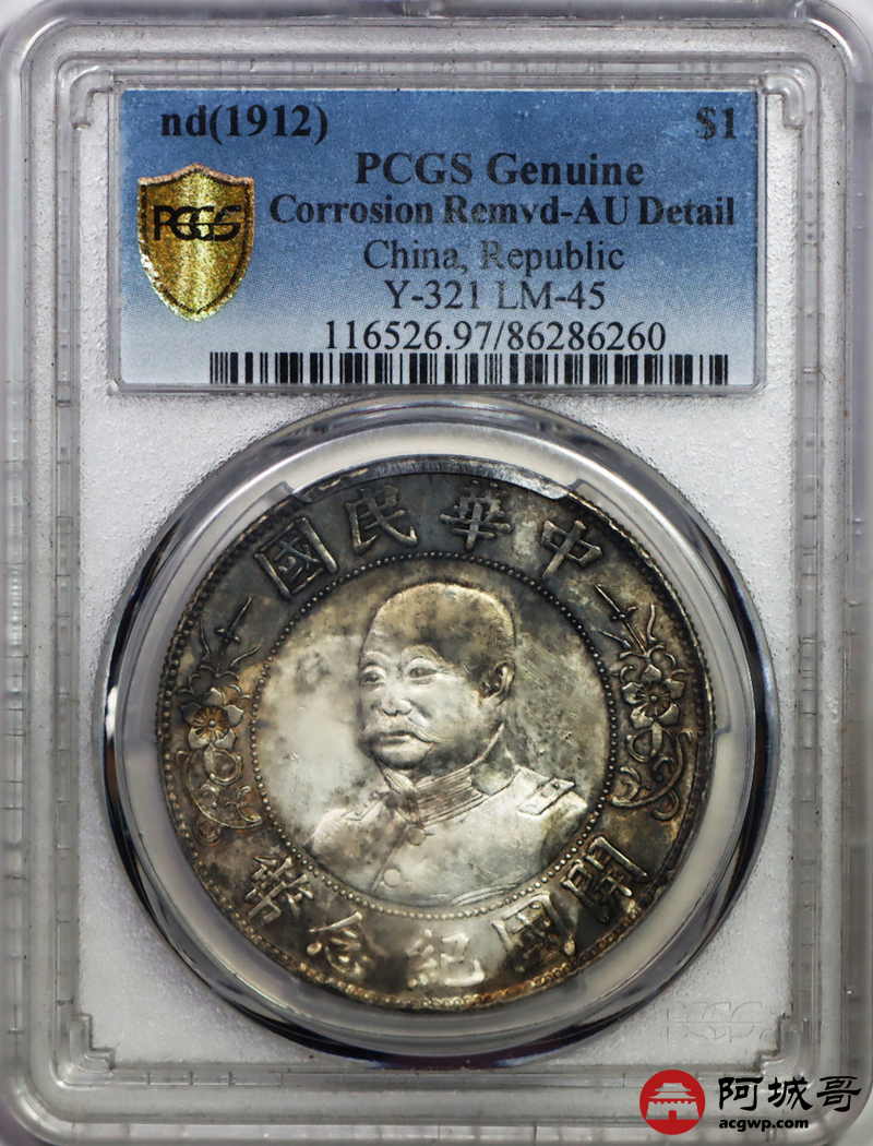 Lot:30 原味 五彩光 开国纪念黎元洪 壹元 PCGS AU