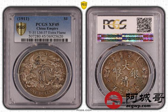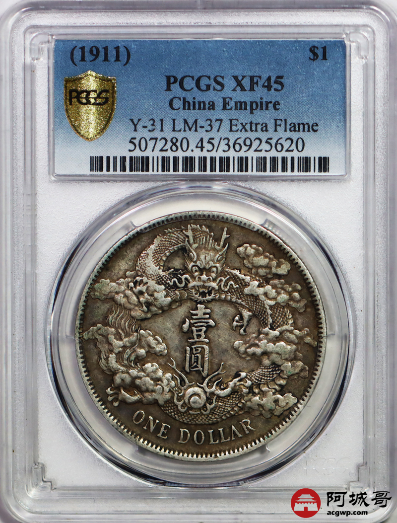 Lot:38 原味老彩 大清宣三壹圆 PCGS XF45