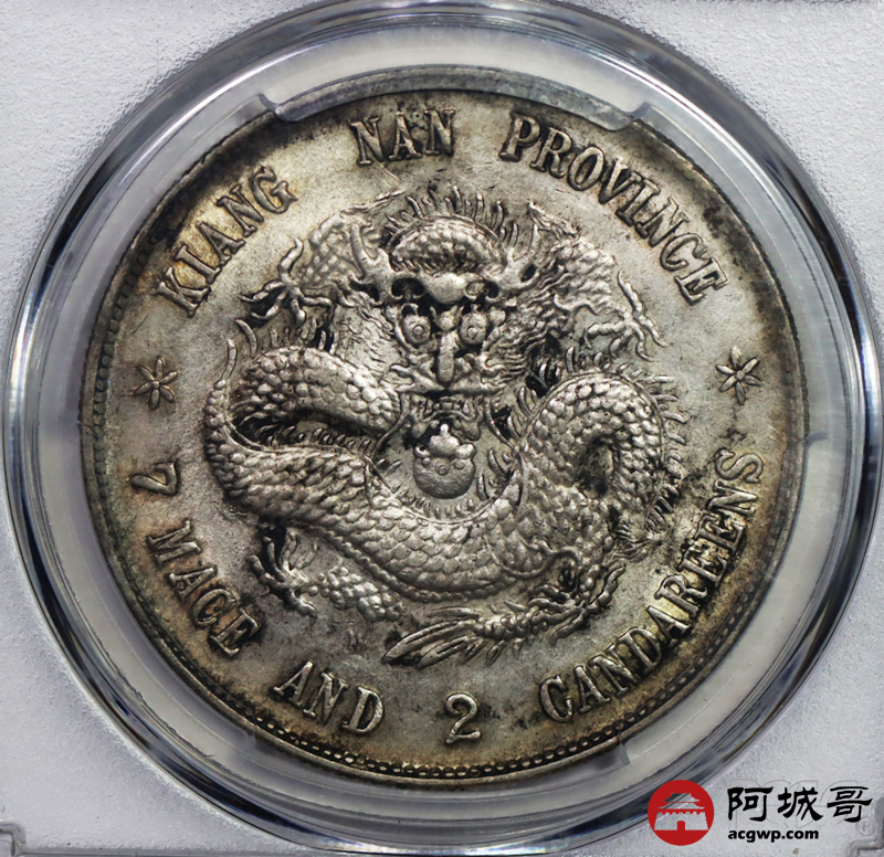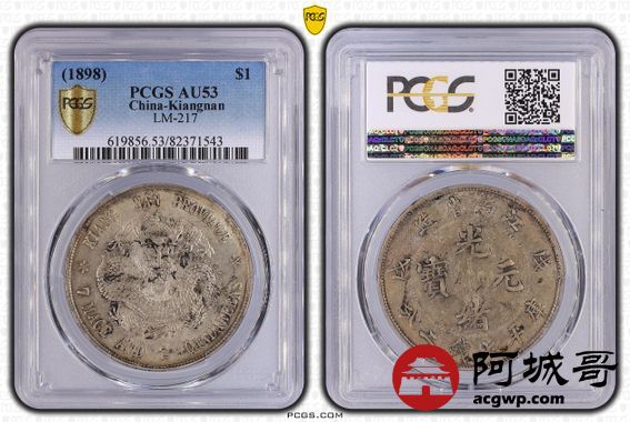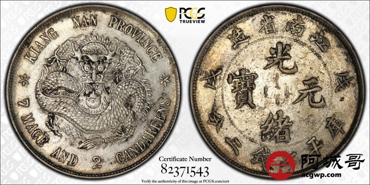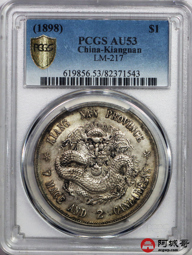 Lot:9 原味底光 江南戊戌 龙洋 七钱二分 PCGS AU 53