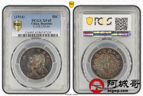 Lot:2 酱五彩 三年大头中圆 PCGS XF45