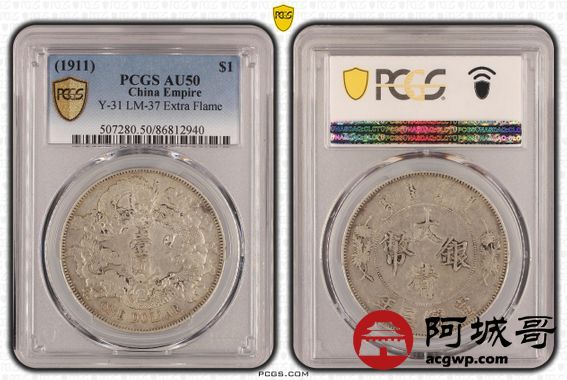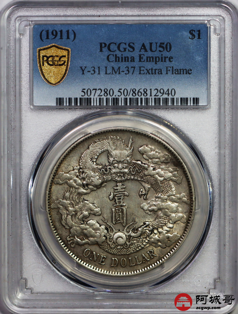 Lot:40 原味黄油底光 大清宣三壹圆 PCGS AU50