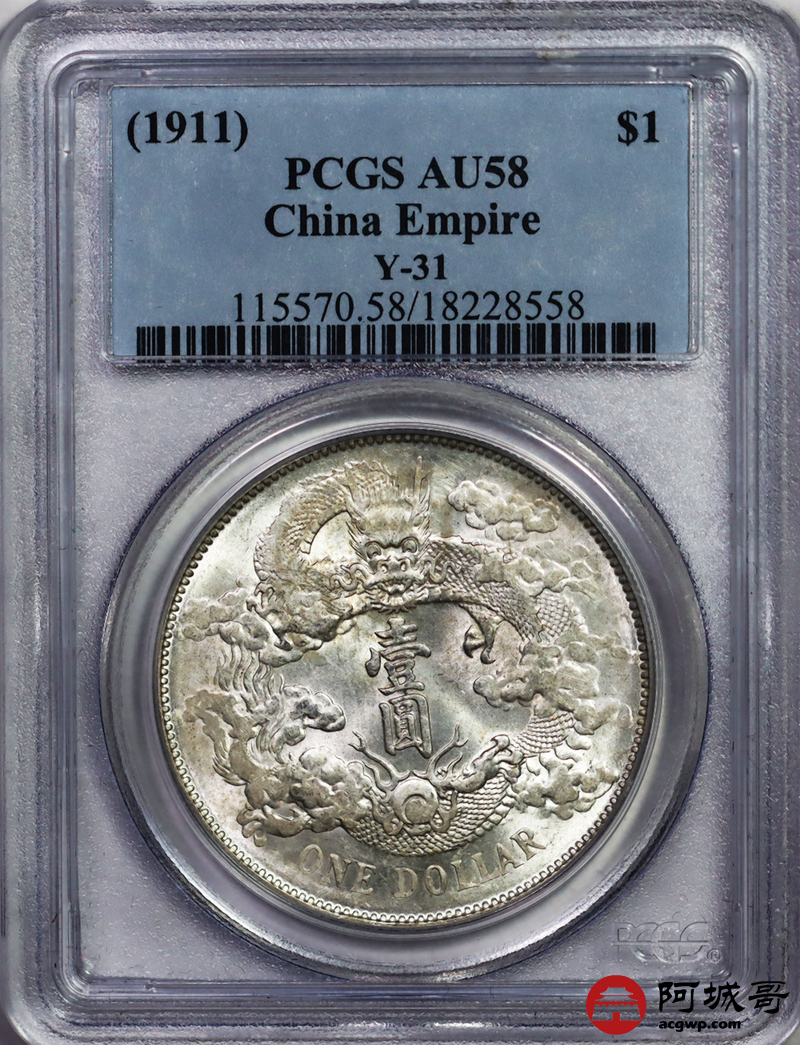 Lot:4 转光大清宣三壹圆 PCGS AU58