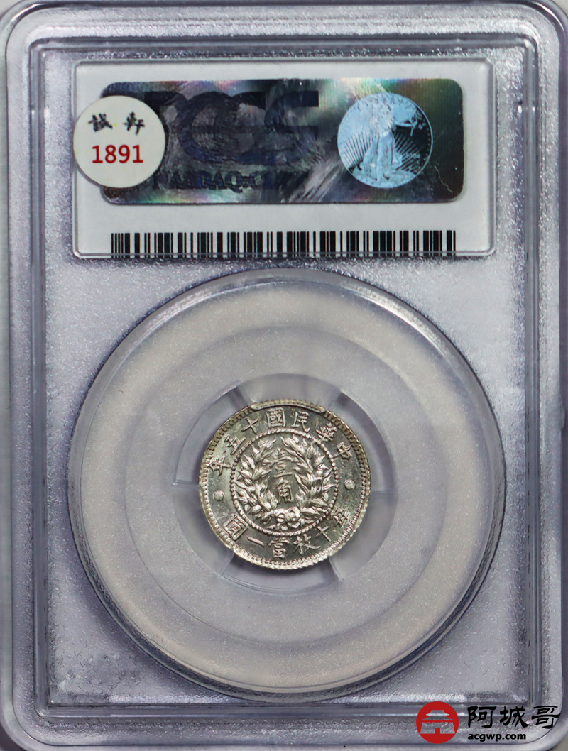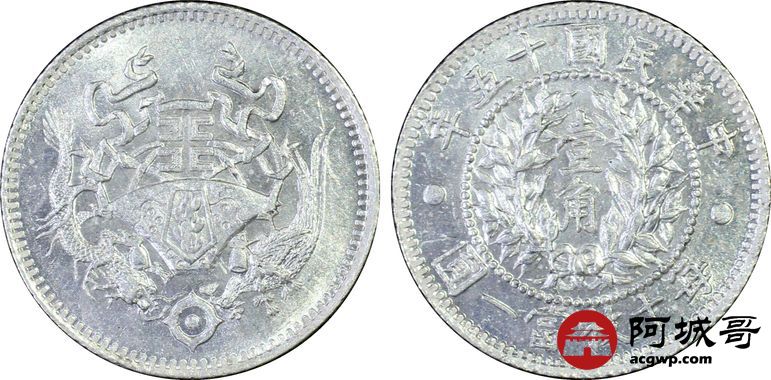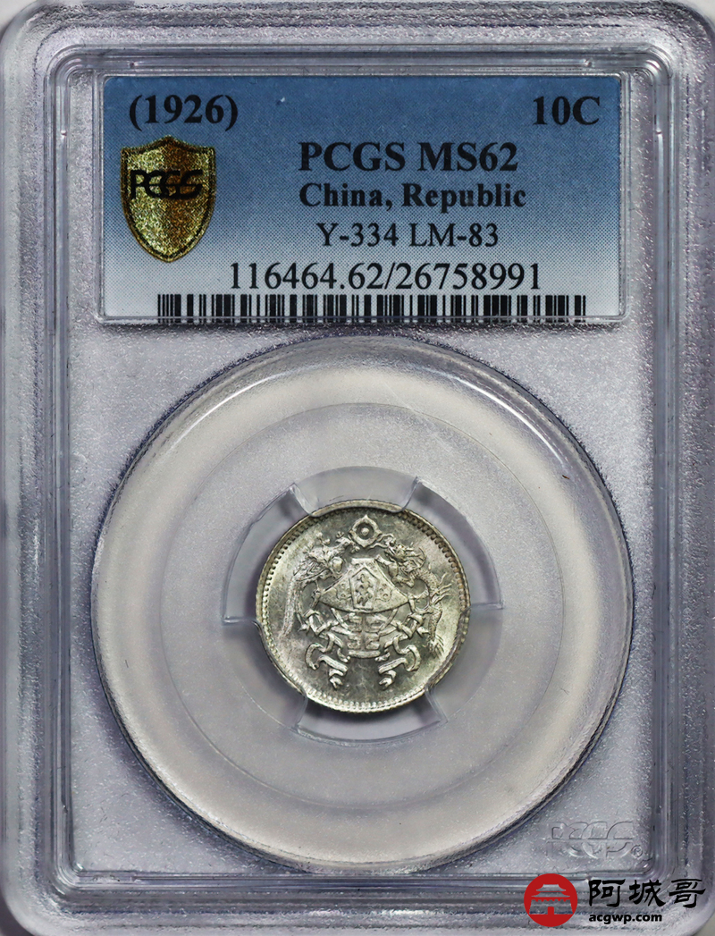 Lot:3 转光 民国十五年龙凤一角 PCGS MS62