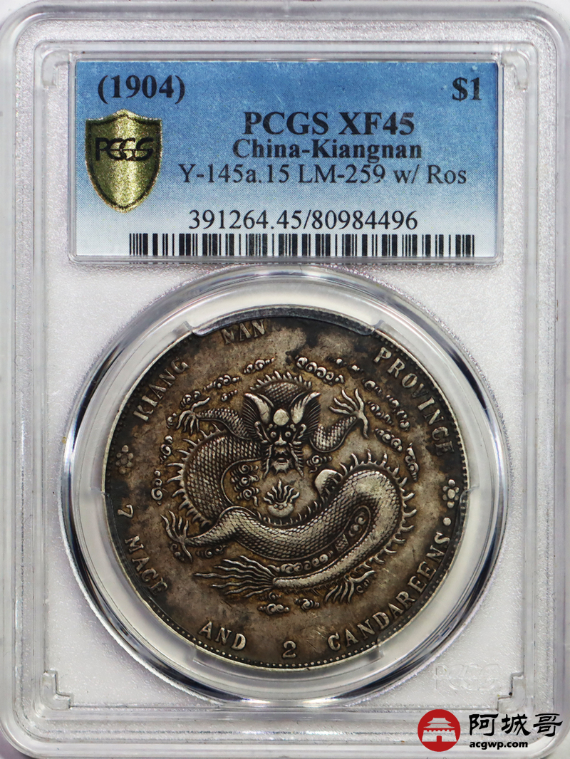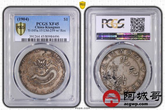 Lot:21 原味老包浆江南甲辰七钱二分 十字星 PCGS XF45
